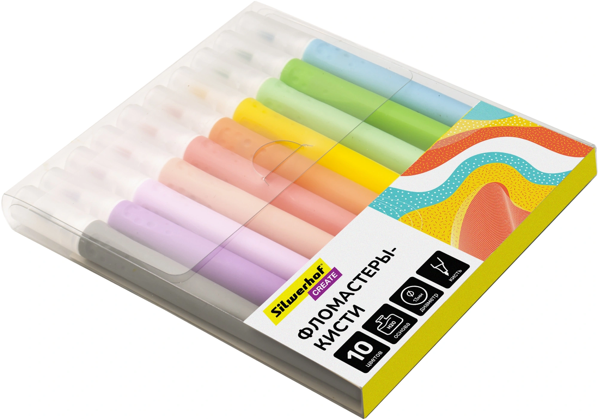 Фломастеры Silwerhof Create 13мм 146мм кисть Вентилируемый 10цв. пакет с европодвесом