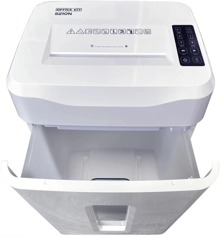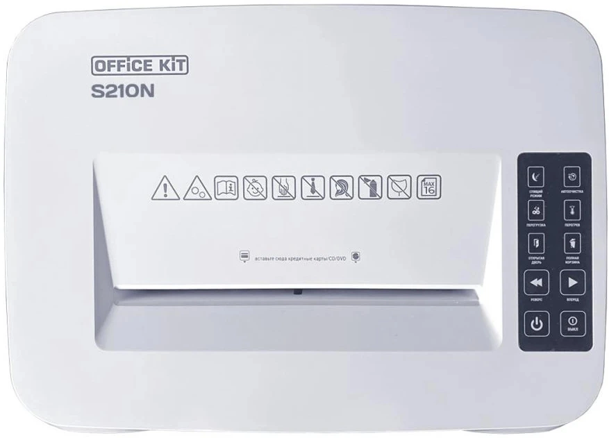 Шредер Office Kit S210N 3,9x38 белый (секр.P-4) фрагменты 16лист. 35лтр. скрепки скобы пл.карты CD