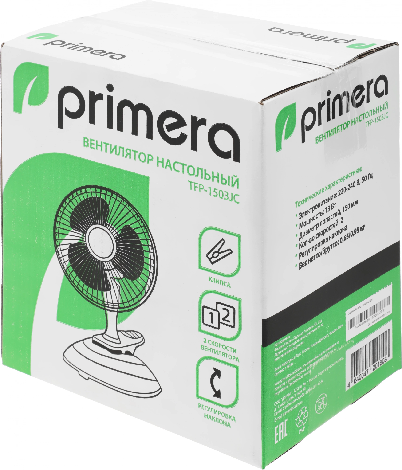 Вентилятор настольный Primera TFP-1503JC 13Вт скоростей:2 белый