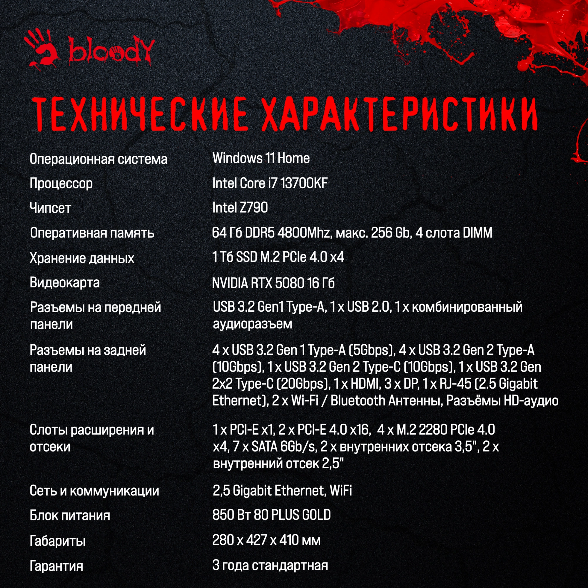 ПК Bloody BD-PC CZ79C3 MT i7 13700KF (3.4) 64Gb SSD1Tb RTX5080 16Gb Windows 11 Home 64 GbitEth 850W черный (RUS) (2086027)