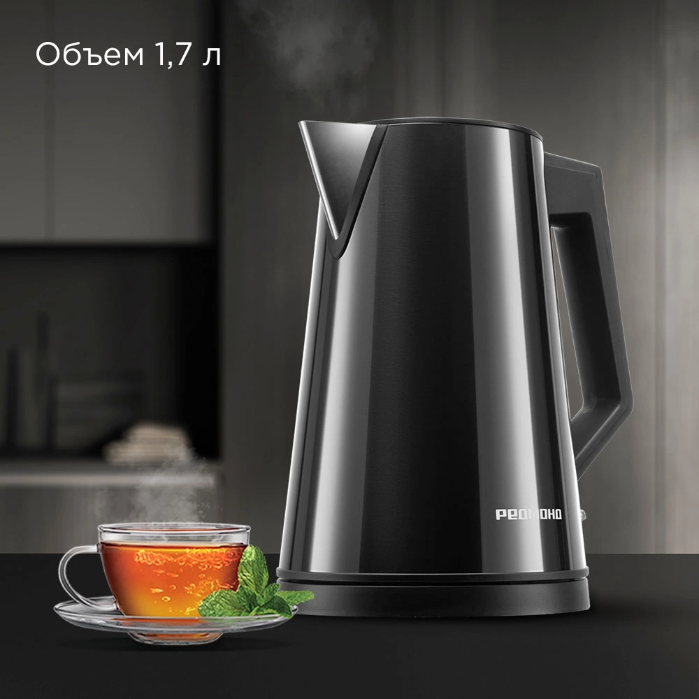 Чайник электрический Редмонд KM244 1.7л. 2200Вт черный корпус: нерж.сталь/пластик