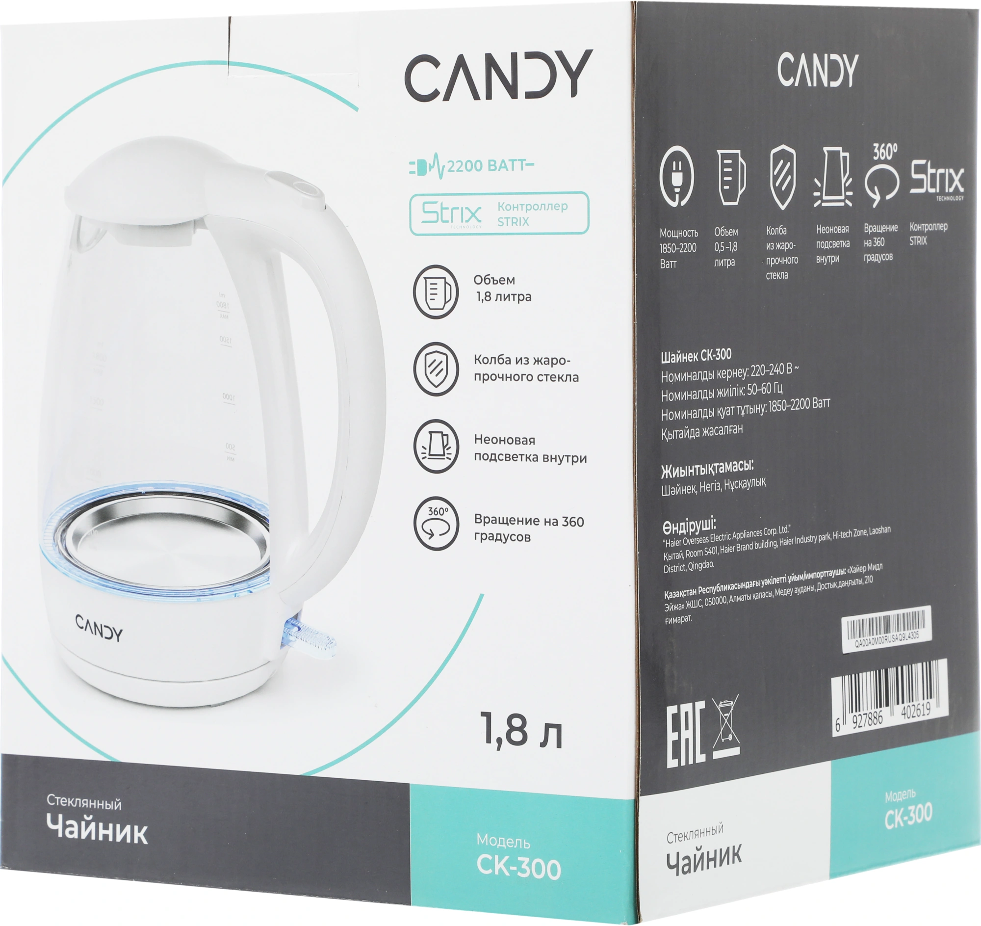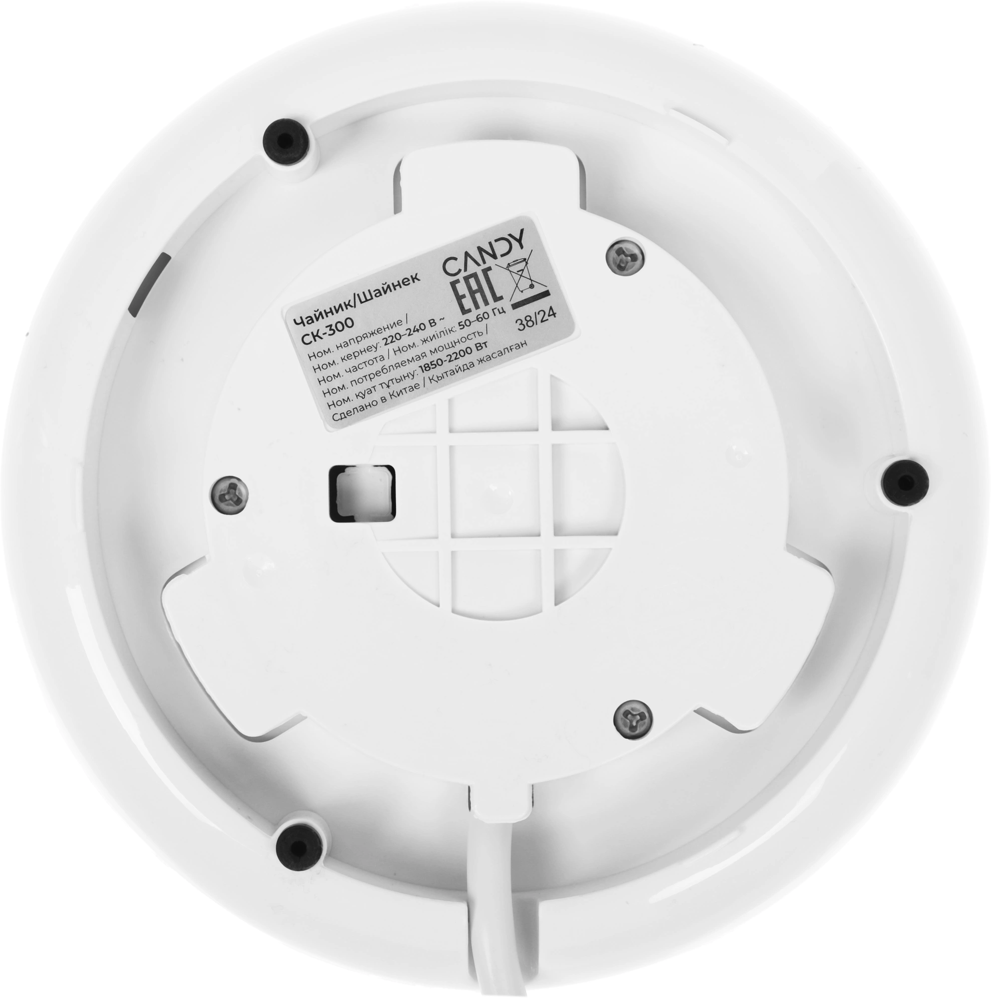 Чайник электрический Candy CK-300 1.8л. 2200Вт белый корпус: Металл/стекло/пластик