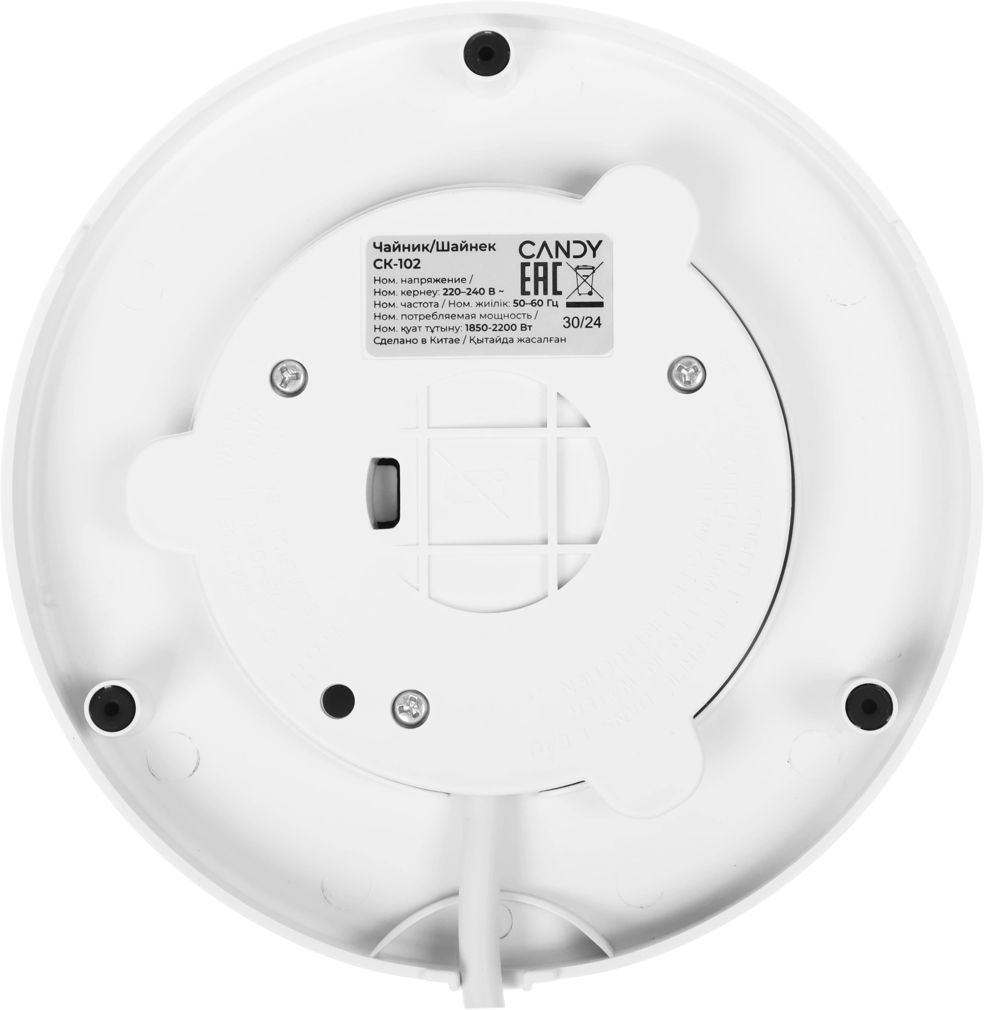 Чайник электрический Candy CK-102 1.5л. 2200Вт белый корпус: нерж.сталь/пластик