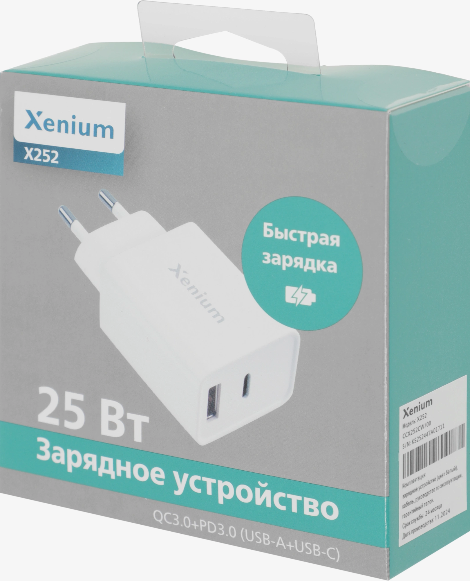 Сетевое зар./устр. Xenium X252 25W 3A+2A USB/USB Type-C универсальное белый (CCX252CW/00)