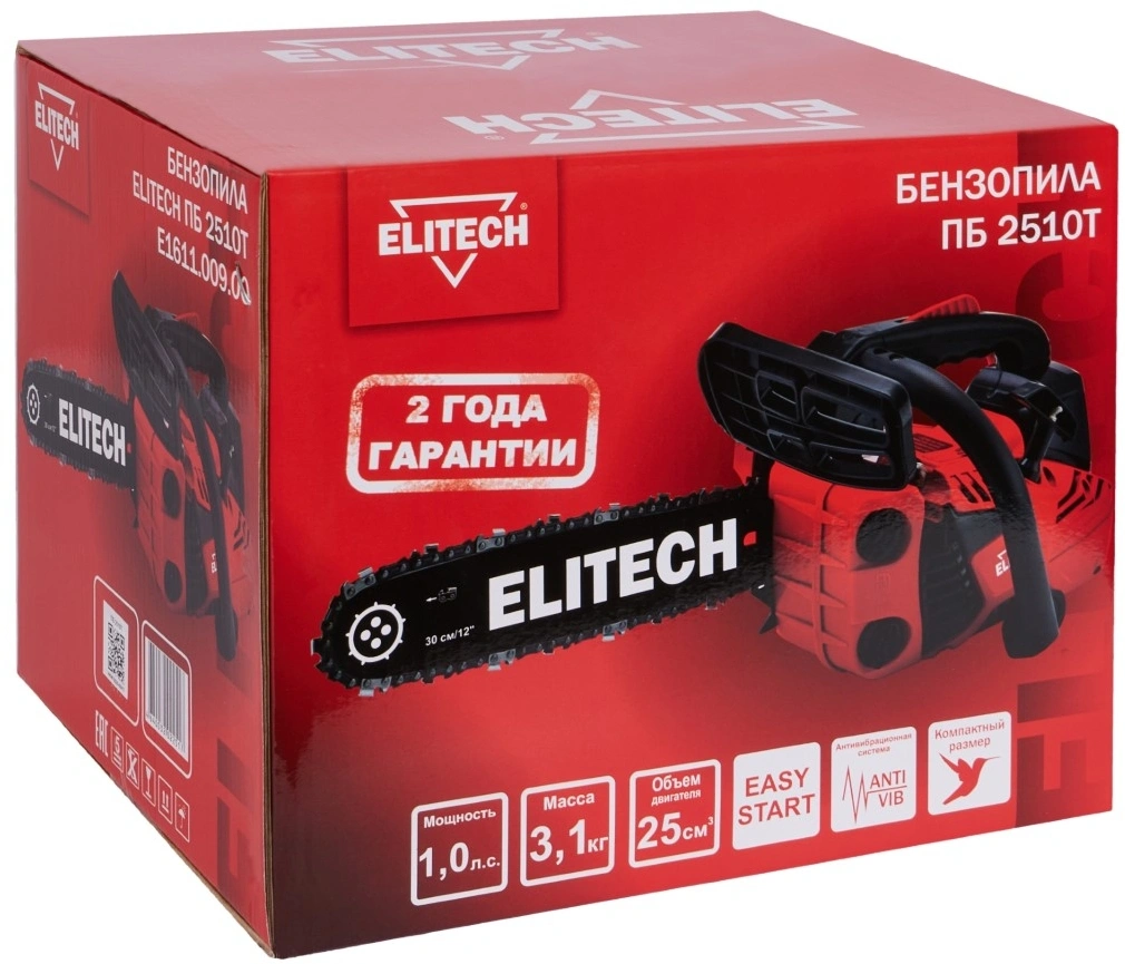 Бензопила Elitech ПБ 2510Т (E1611.009.00) 750Вт 1л.с. дл.шины:12" (30cm) (205451)