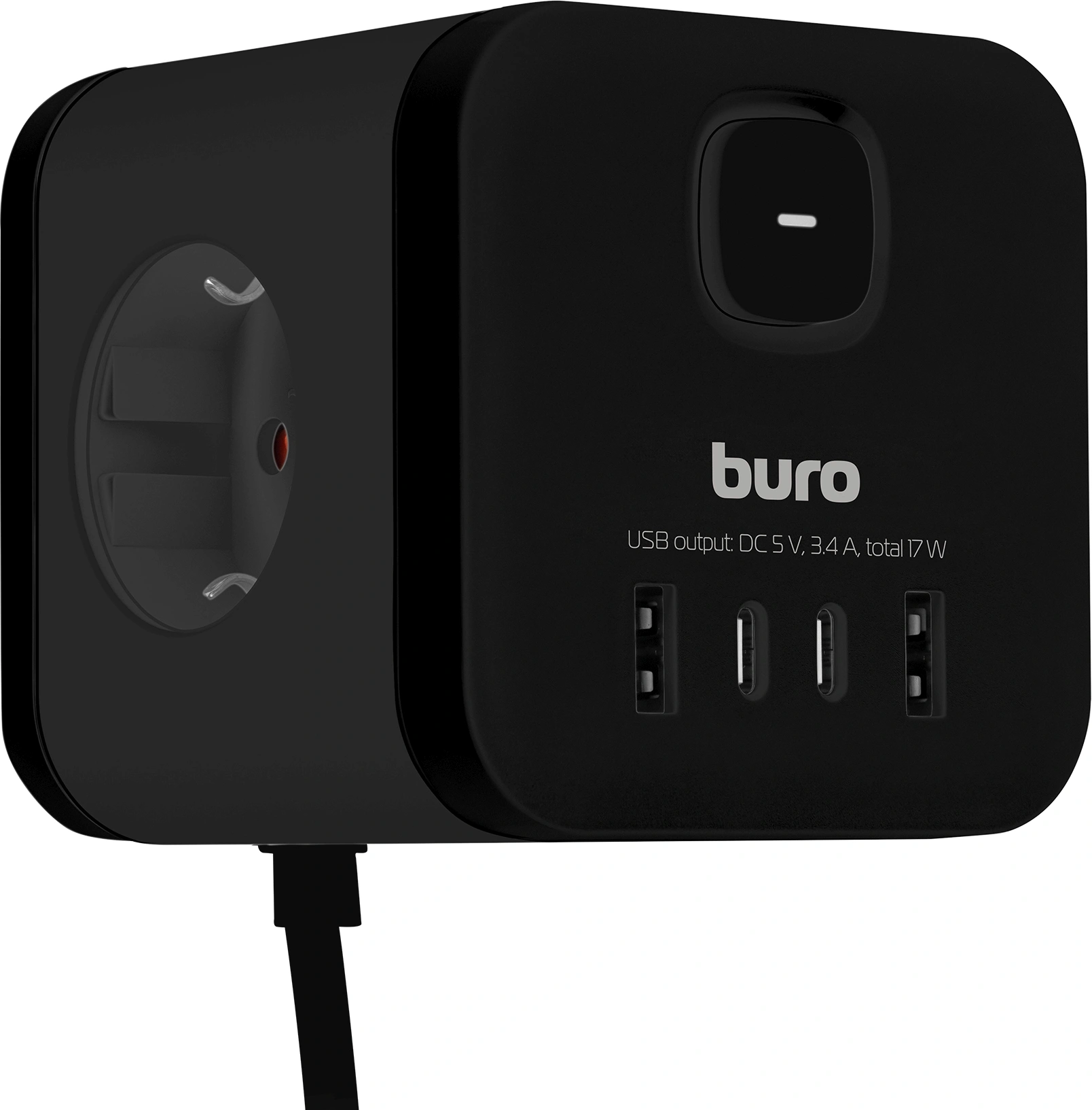 Сетевой удлинитель Buro BU-PC3.1UС-B 1.5м (3 розетки) черный (пакет ПЭ)