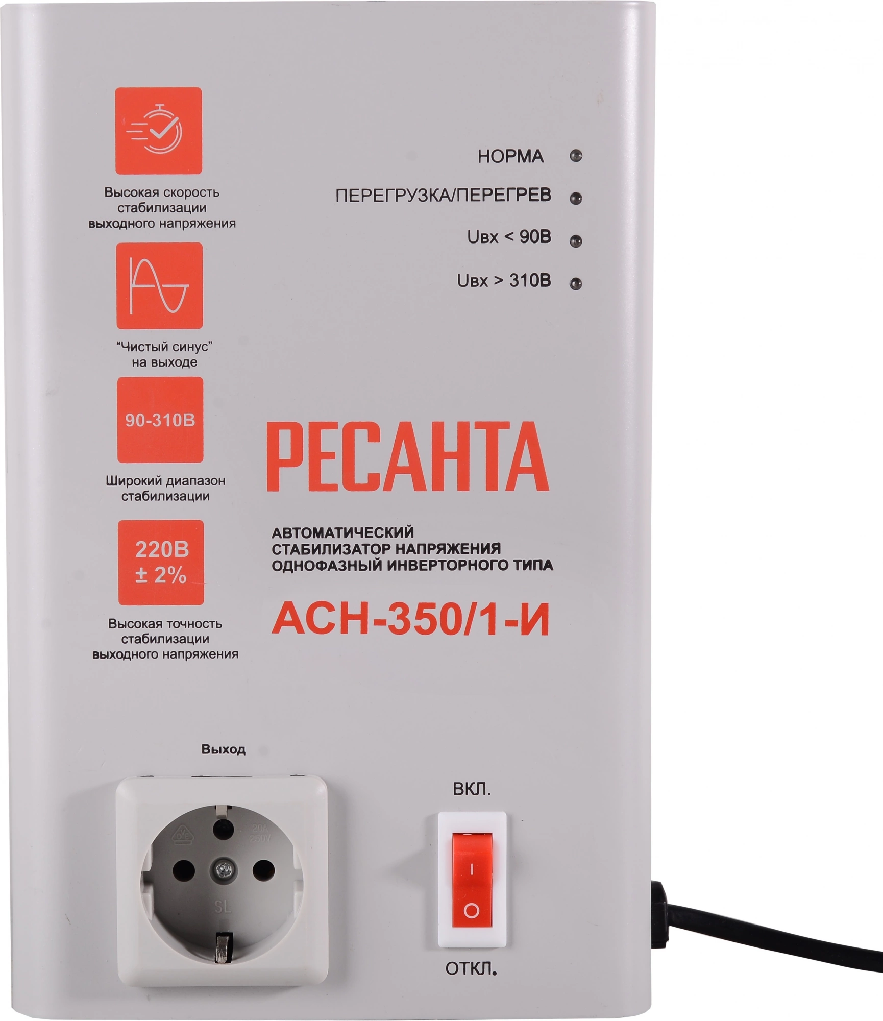 Стабилизатор напряжения Ресанта АСН-350/1-И 0.35кВА однофазный белый (63/6/74)