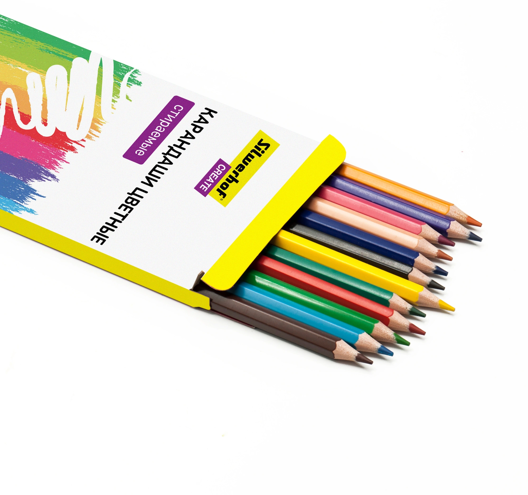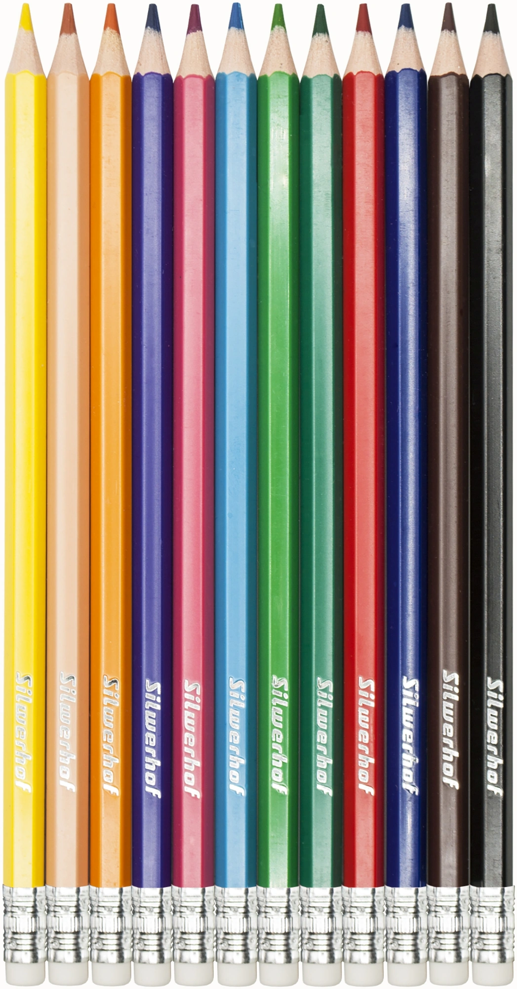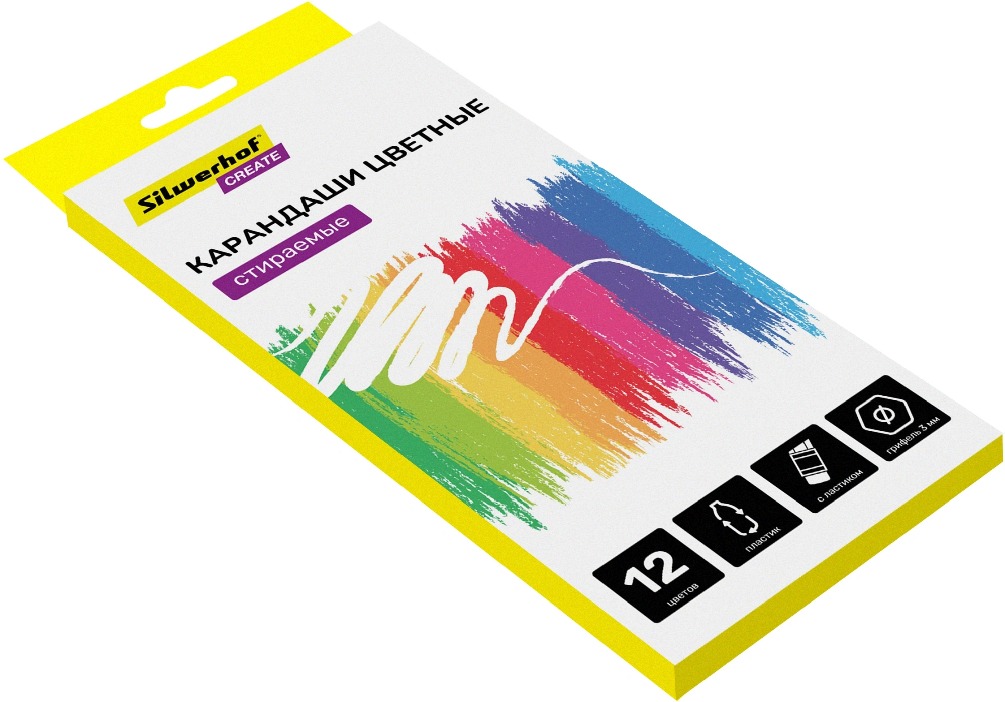 Карандаши цв. Silwerhof Create 3мм шестигран. пластик ассорти 12цв. коробка/европод. ластик
