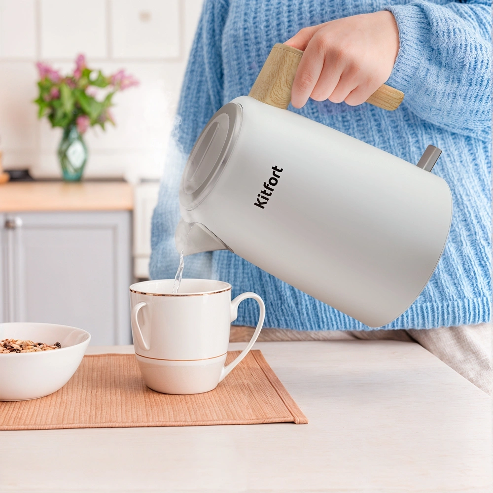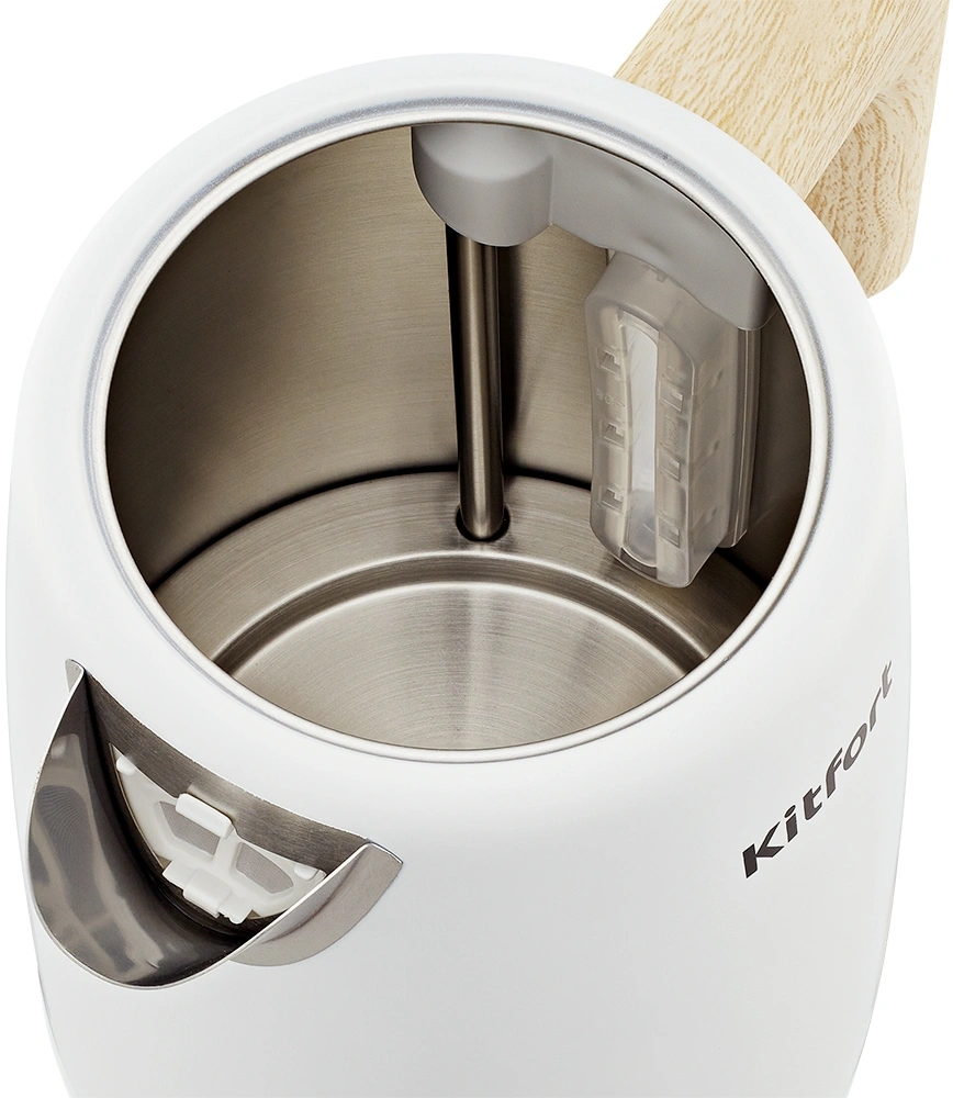 Чайник электрический Kitfort КТ-6794 1.7л. 2200Вт белый/дерево корпус: нерж.сталь/пластик