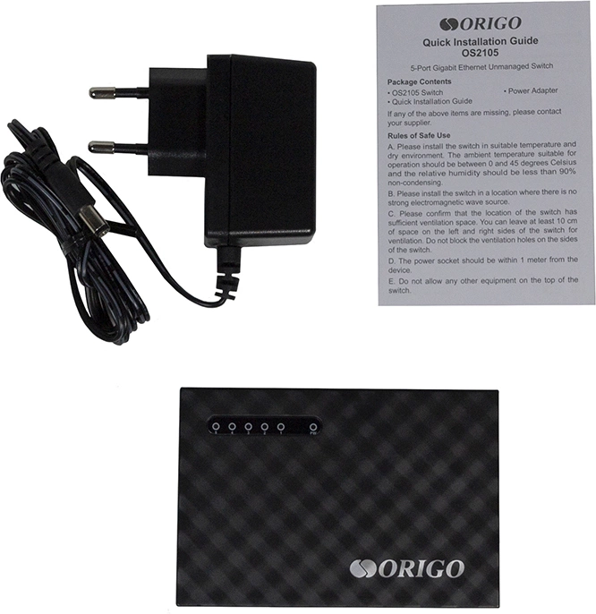 - КомплектацияКоммутатор OS2105, адаптер питания, краткое руководство по установке.