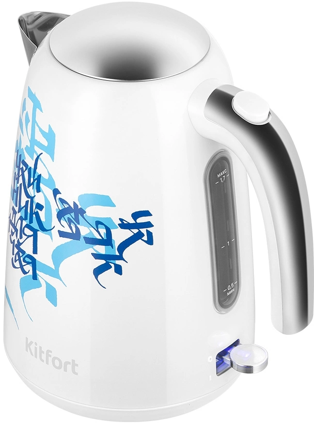 Чайник электрический Kitfort КТ-6772 1.7л. 2200Вт белый/синий корпус: металл/пластик