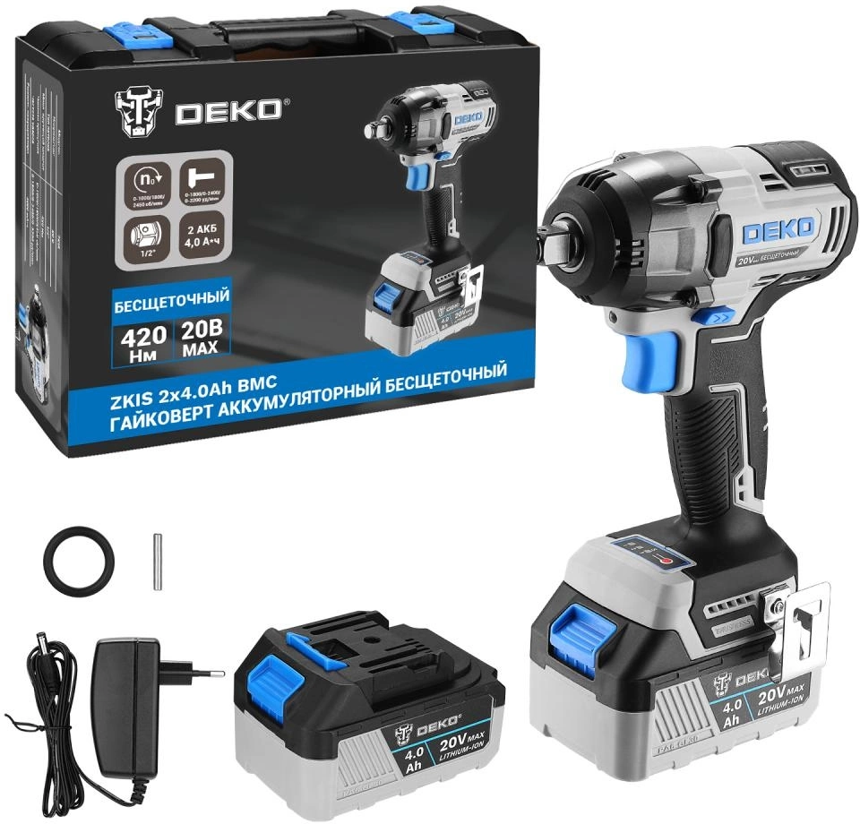 Гайковерт Deko ZKIS аккум. патрон:квад.1/2" (кейс в комплекте) (083-1087)