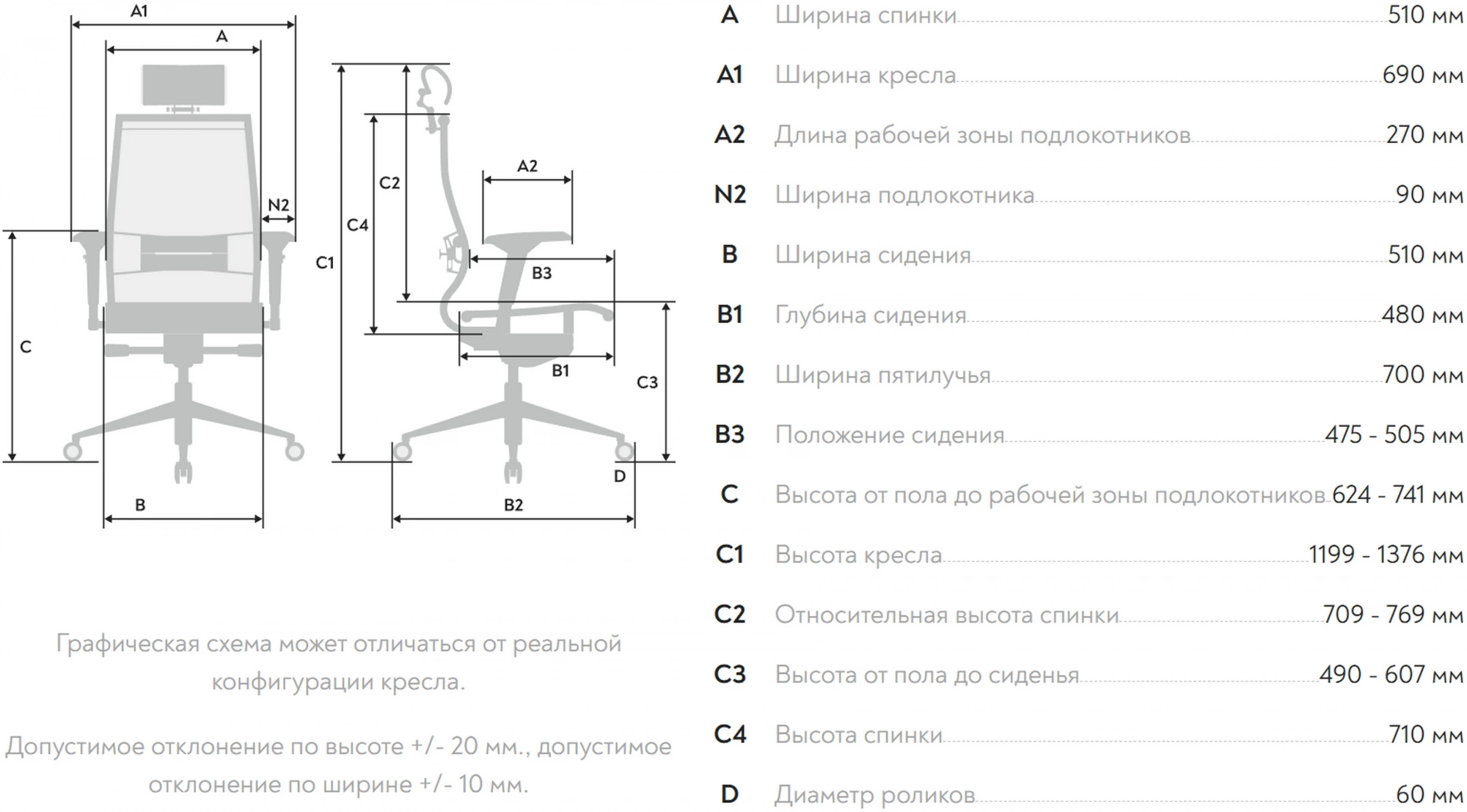 - Ширина с подлокотниками690