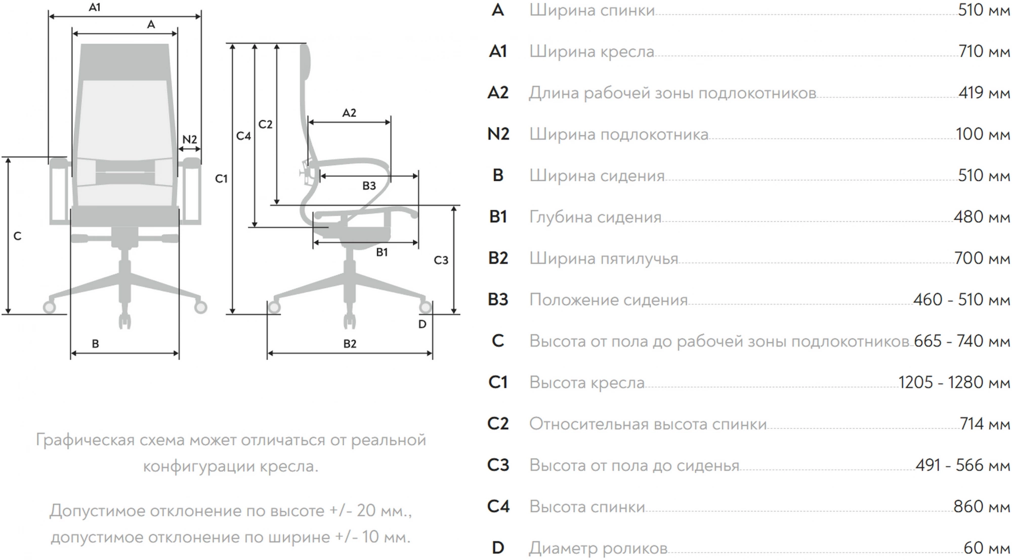 - Высота с подлокотниками MIN665