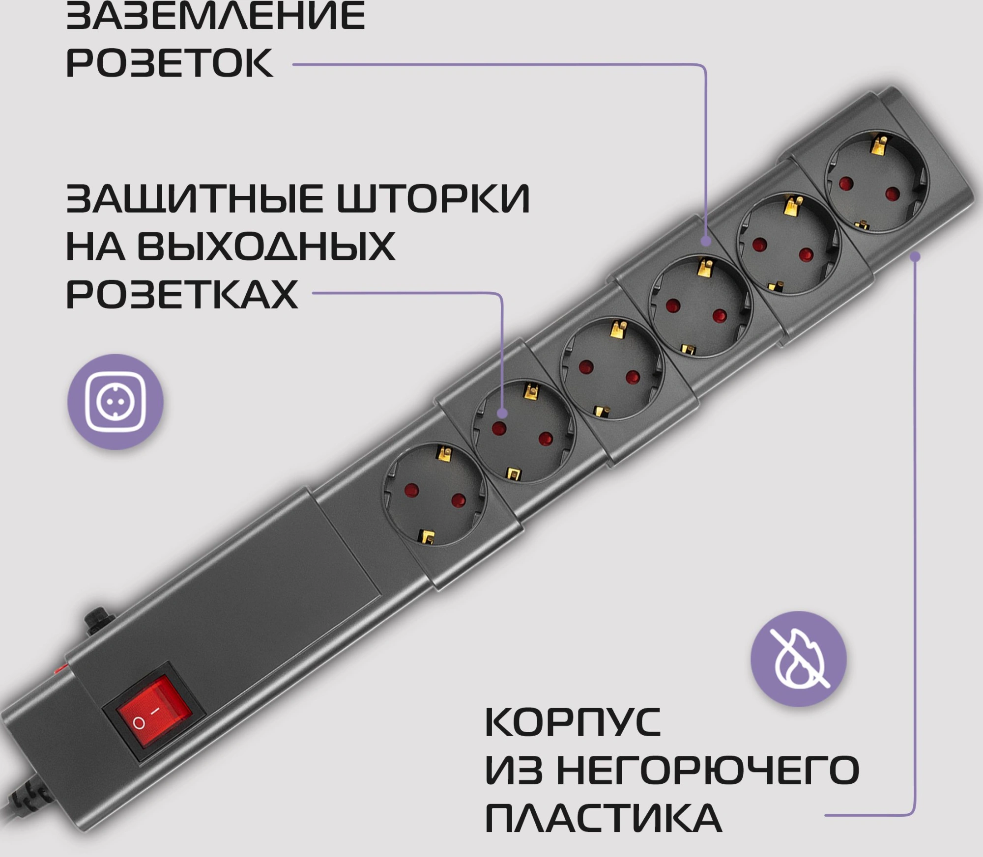 Сетевой фильтр Buro 600SPro-16-1.8-G 1.8м (6 розеток) графитовый (коробка)