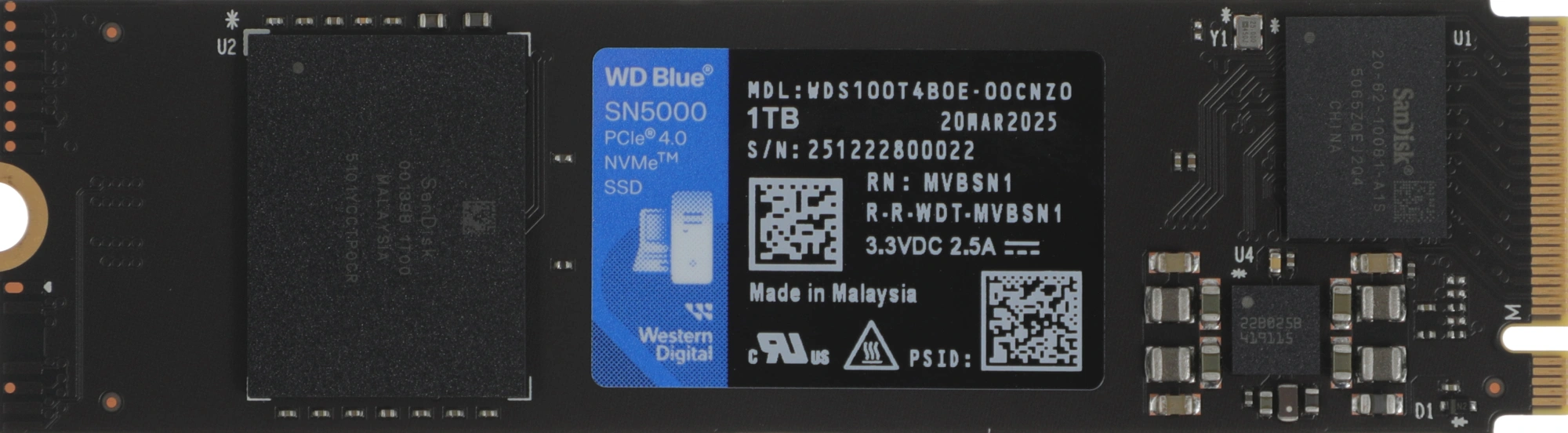 Накопитель SSD WD PCIe 4.0 x4 1TB WDS100T4B0E SN5000 Blue M.2 2280