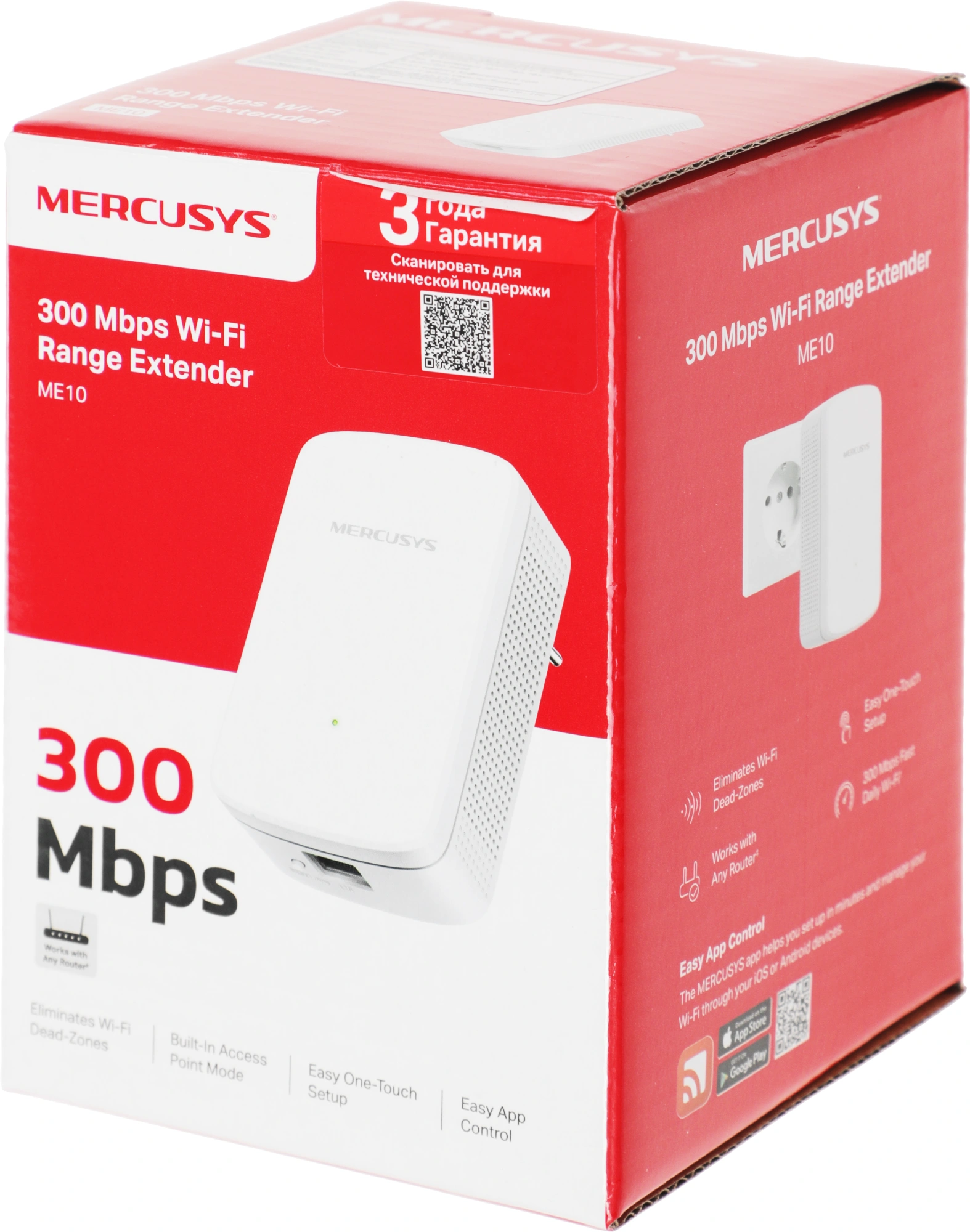 Повторитель беспроводного сигнала Mercusys ME10 N300 10/100BASE-TX белый