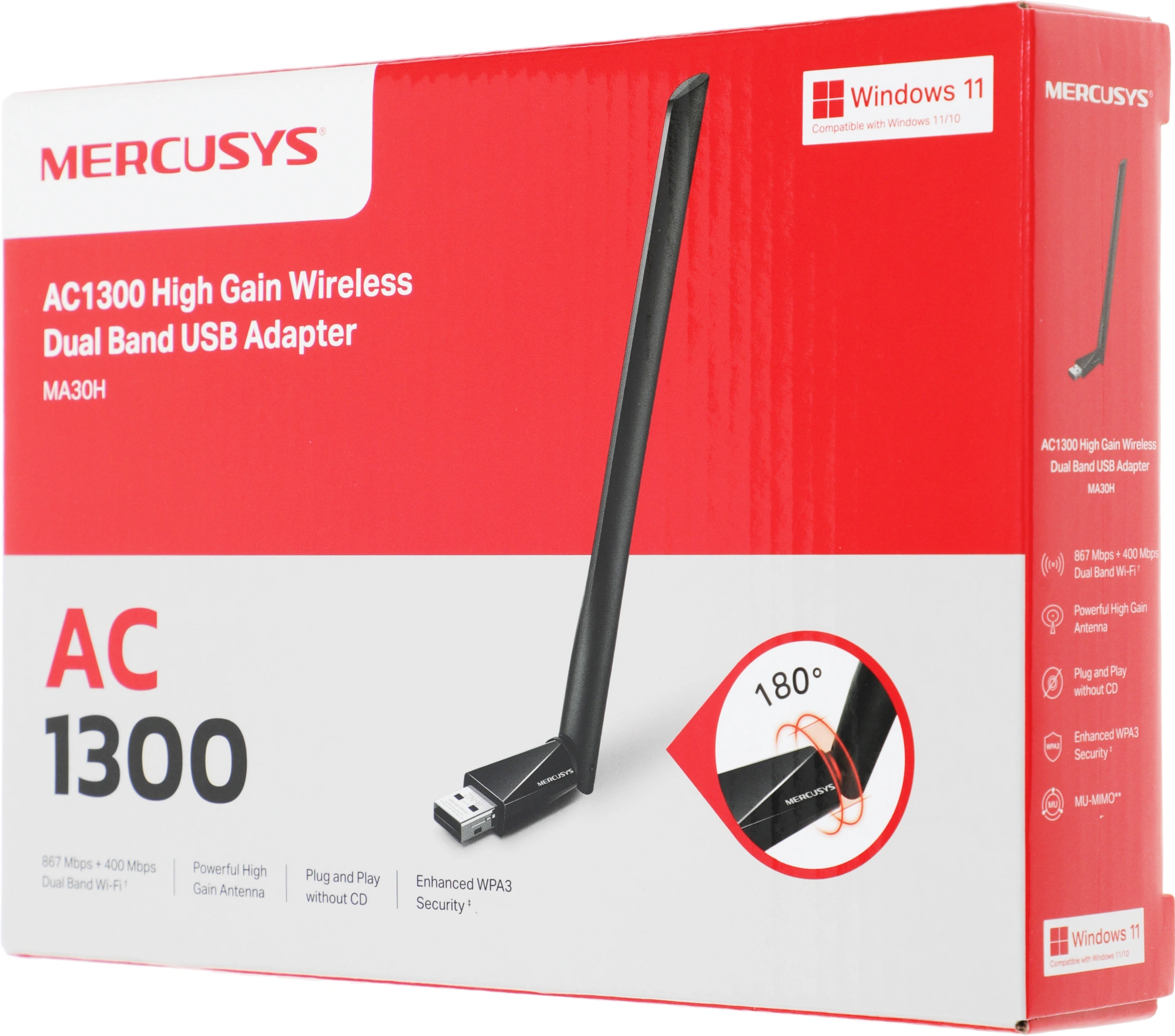 Сетевой адаптер Wi-Fi Mercusys MA30H AC1300 USB 2.0 (ант.внеш.несъем.) 1ант.