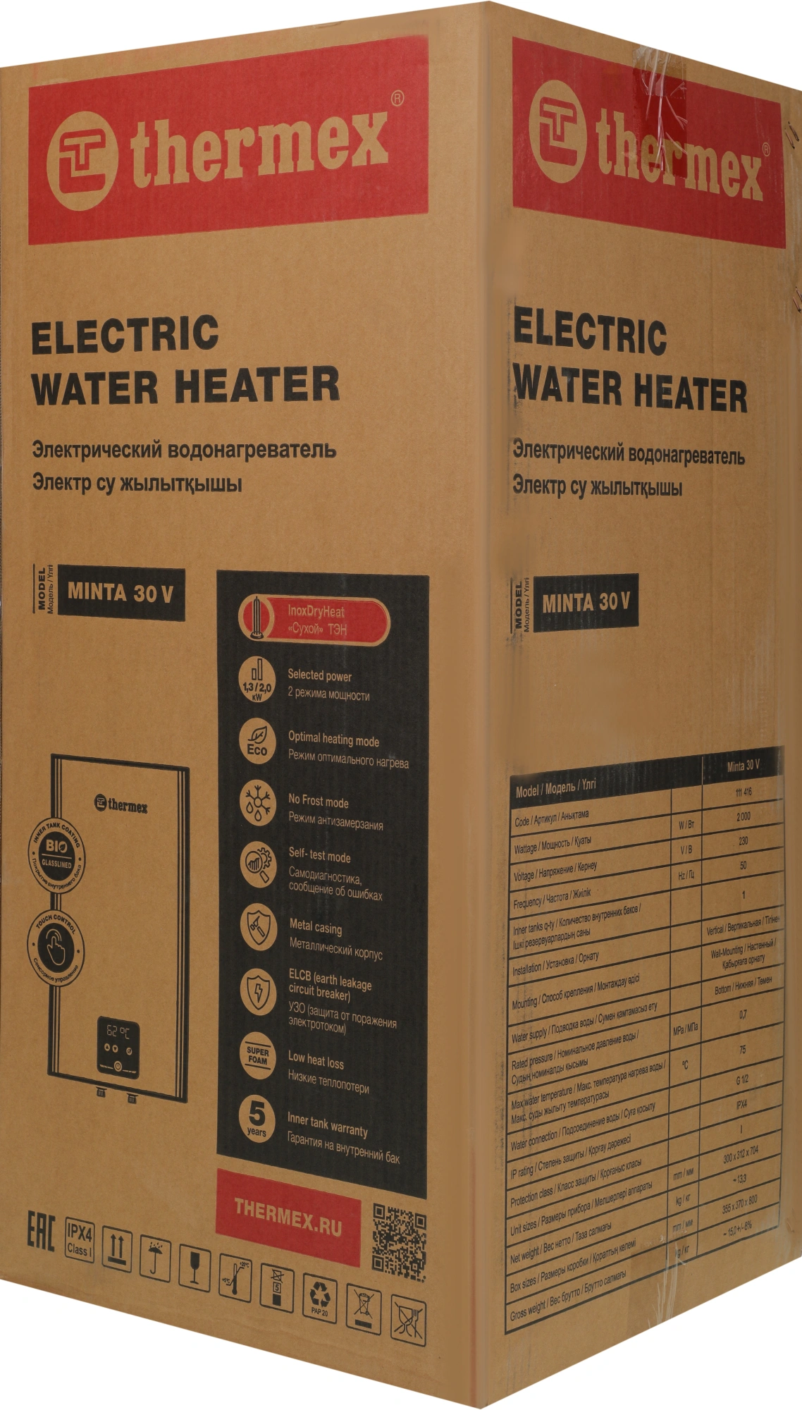 Водонагреватель Thermex Minta 30 V 2кВт 30л электрический настенный/белый