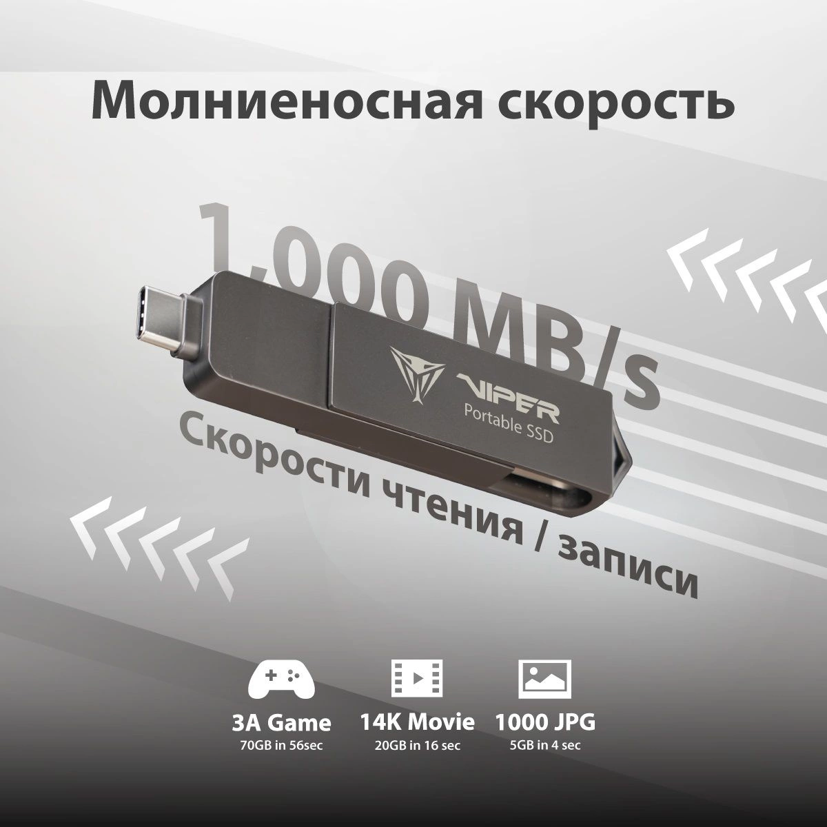 Накопитель SSD Patriot USB-C 1TB PVP301TB28UDG Viper PVP30 2.5" черный USB-A