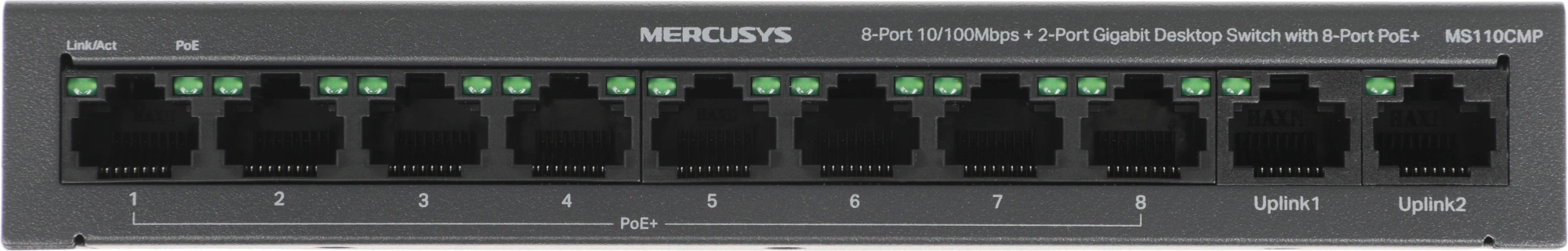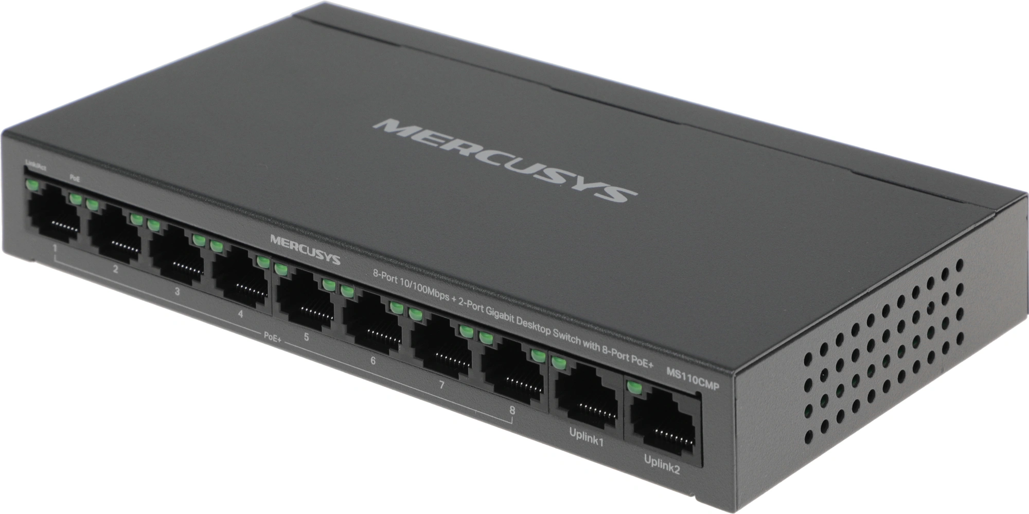 Коммутатор Mercusys MS110CMP (L2) 8x100Мбит/с 2x1Гбит/с 8PoE+ 115W неуправляемый