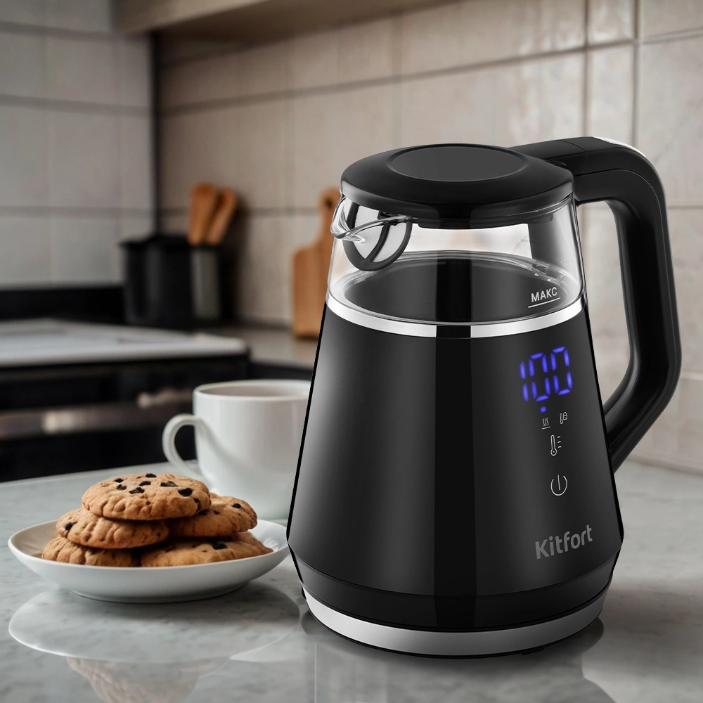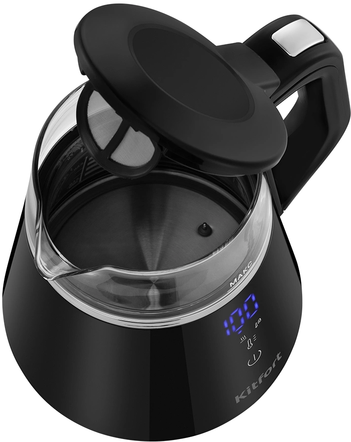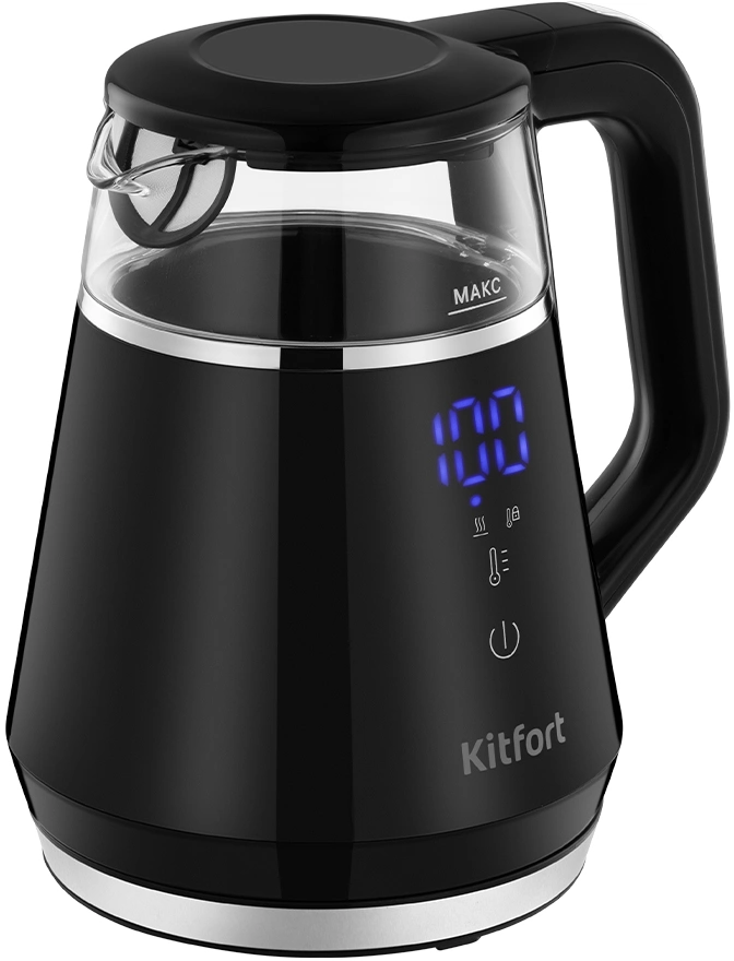 Чайник электрический Kitfort КТ-6696 1л. 1100Вт черный/серебристый корпус: стекло/пластик (KT-6696)