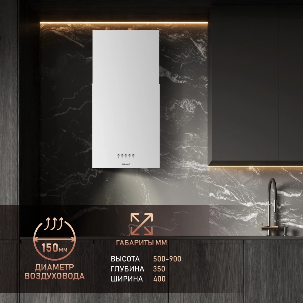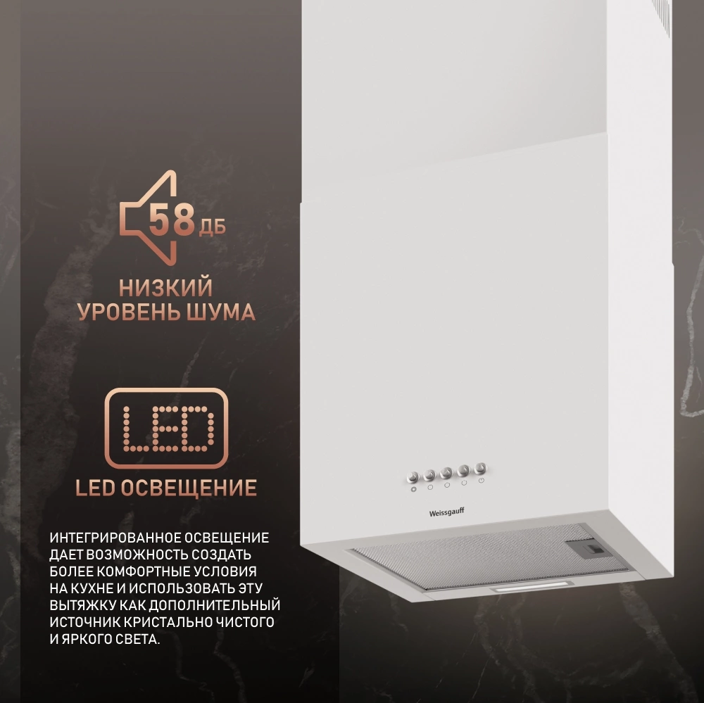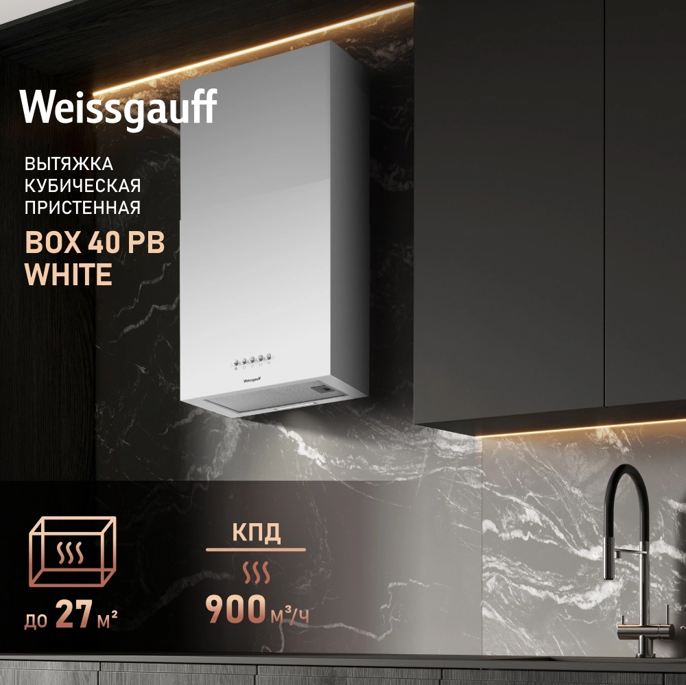 Вытяжка каминная Weissgauff Box 40 PB белый управление: кнопочное (1 мотор)