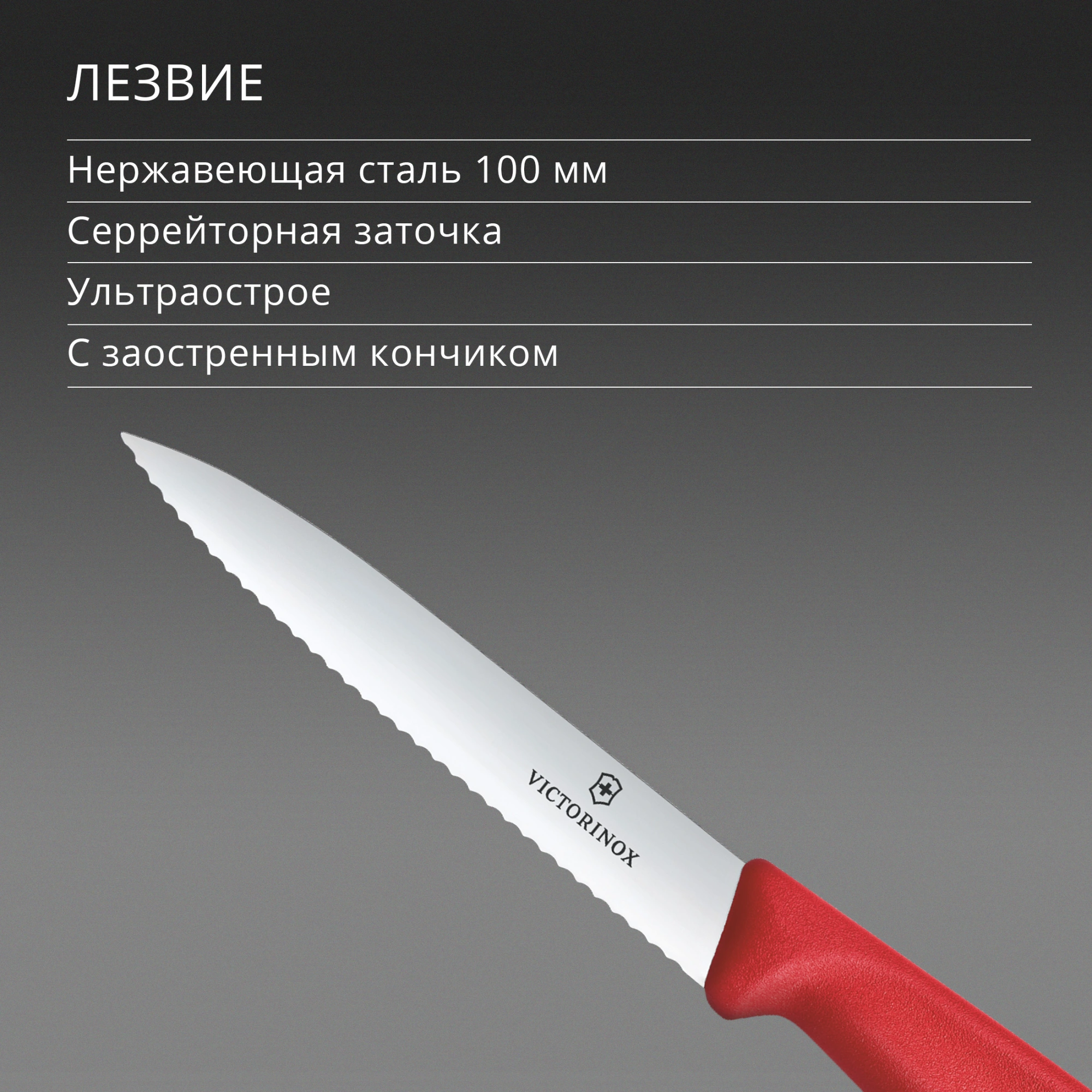 Нож кухонный Victorinox Swiss Classic 6.7731.C1 для овощей лезв.100мм серрейт. заточка красный