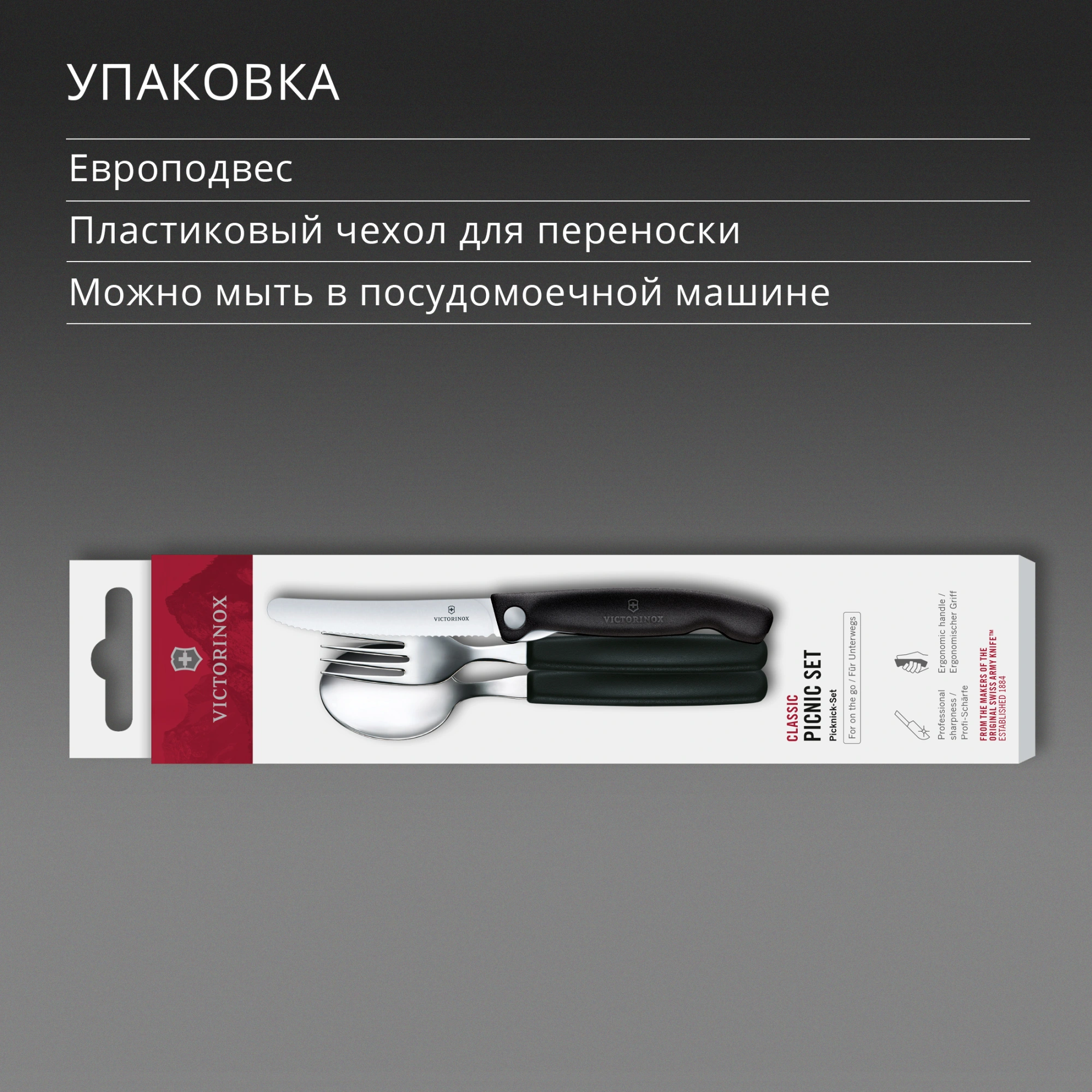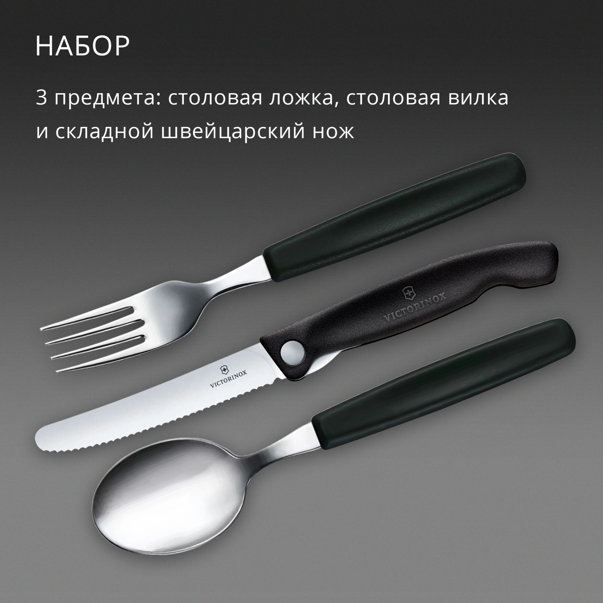 Набор столовых приборов Victorinox Swiss Classic для пикника/офиса набор из 3предм. черный (6.7193.3F)