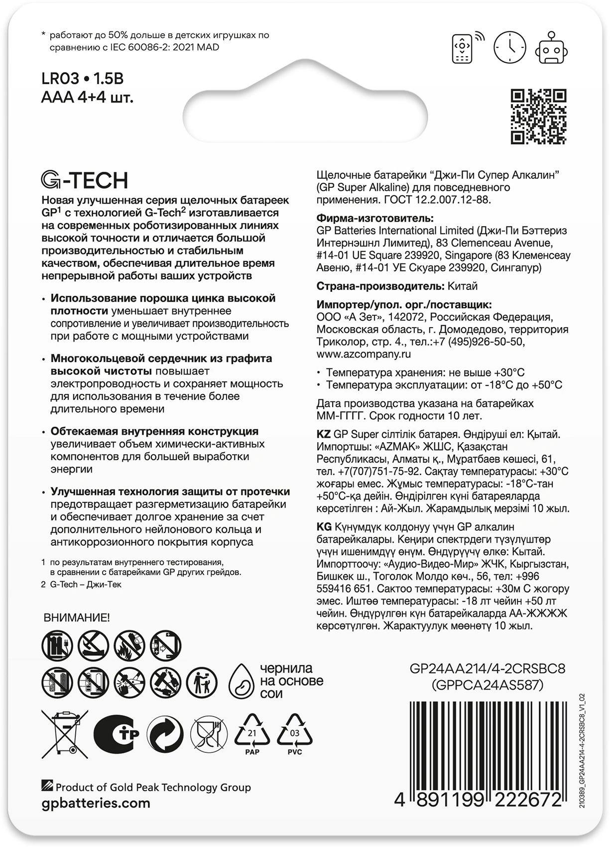 - МодельSuper Alkaline G-Tech 24А