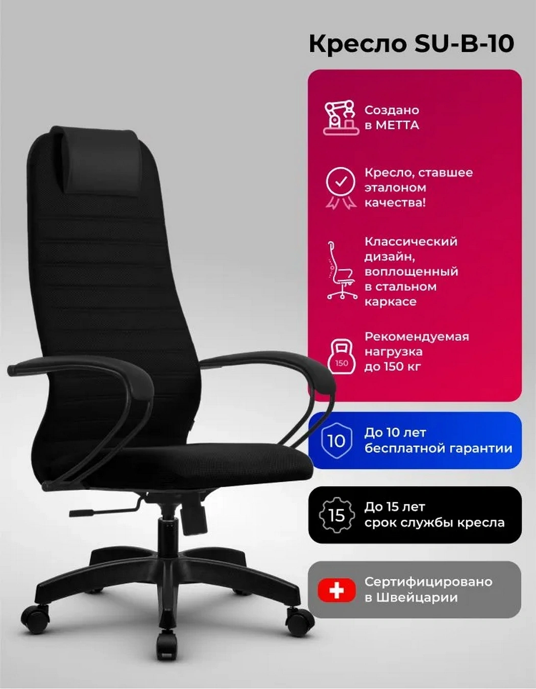 Кресло Метта SU-B-10 черный сиденье черный сетка с подголов. крестов. металл хром