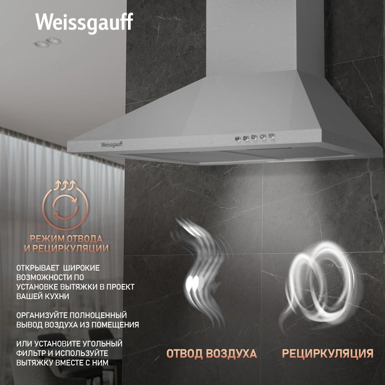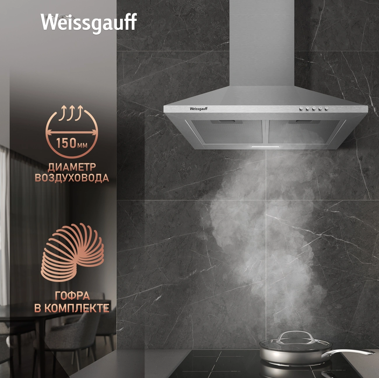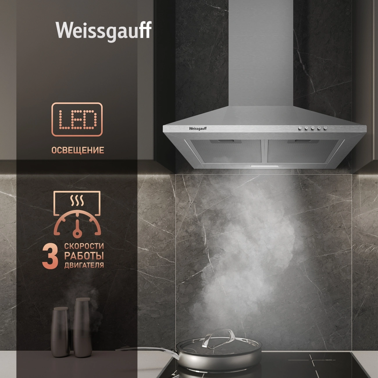 Вытяжка каминная Weissgauff Zosma 50 PB IX нержавеющая сталь управление: кнопочное (1 мотор)