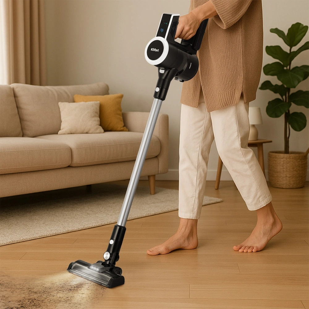 - Особенности пылесосаLED-дисплей, настенное крепление, подсветка зоны уборки