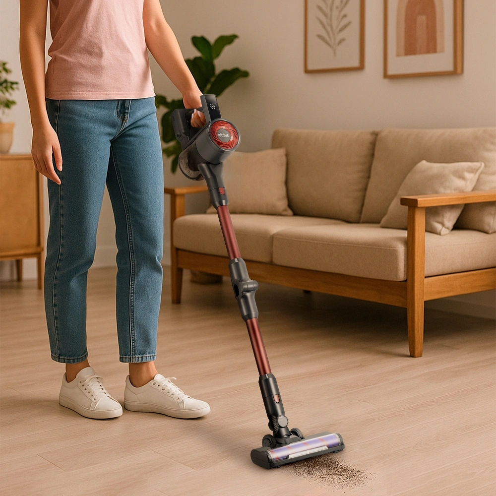 - Особенности пылесосаместо для хранения насадок, настенное крепление, подсветка зоны уборки