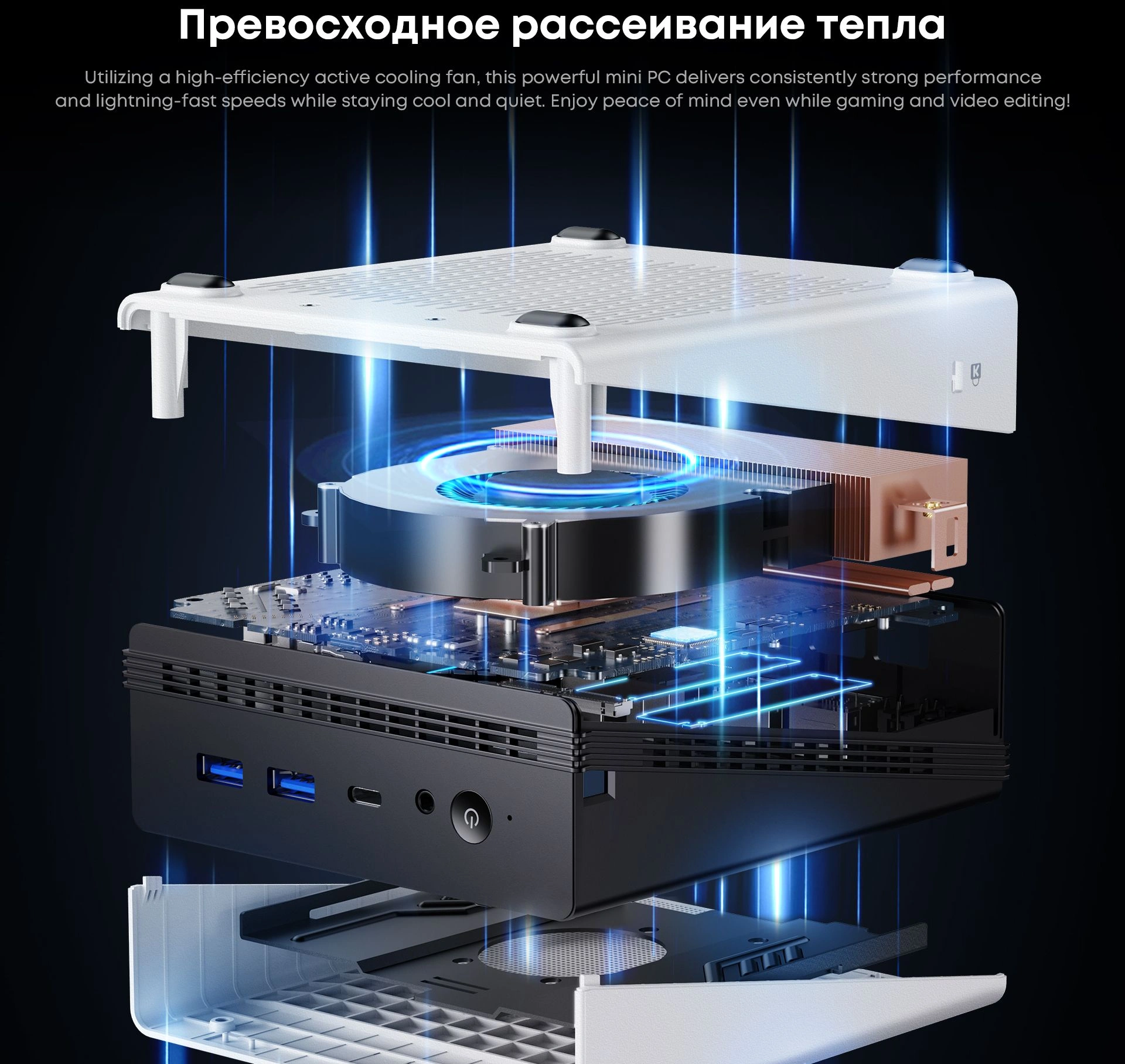 ПК Мини Chuwi UBox Ryzen 5 7430U (4.3) 16Gb SSD512Gb RGr Windows 11 Pro 2x2.5GbitEth WiFi BT 90W белый/черный