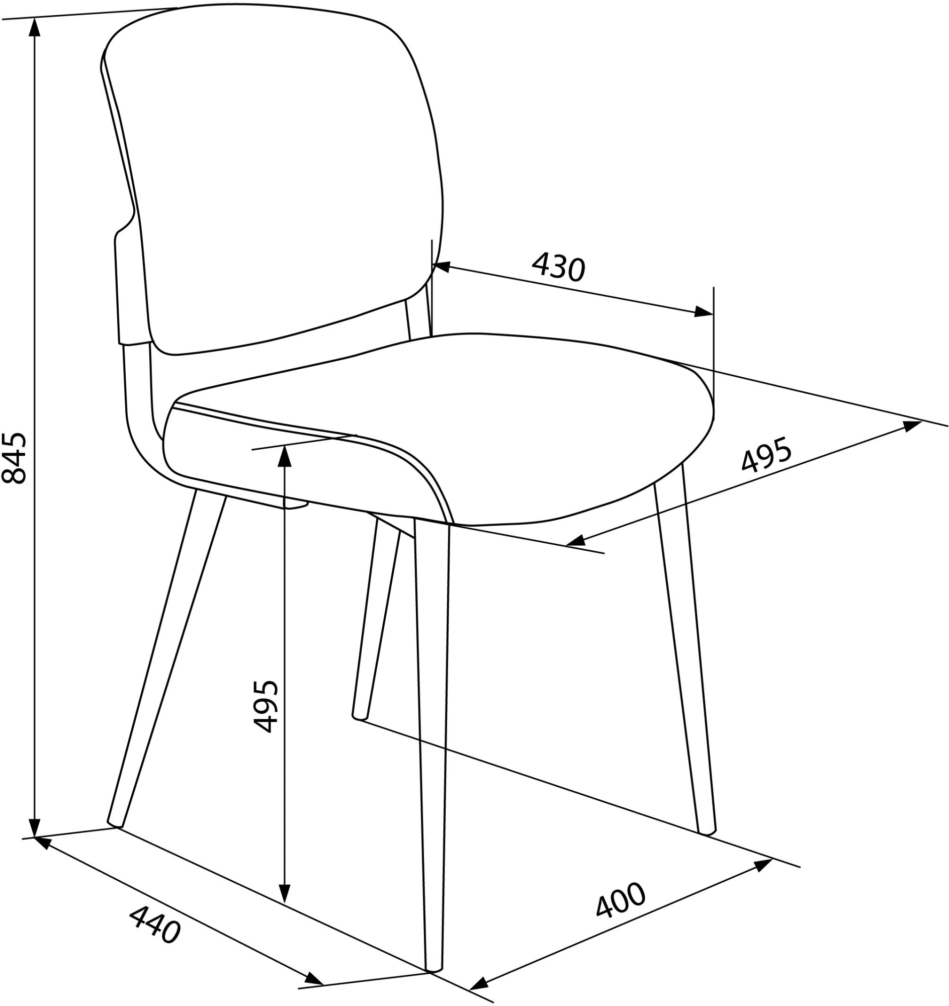 - Ширина сиденья495