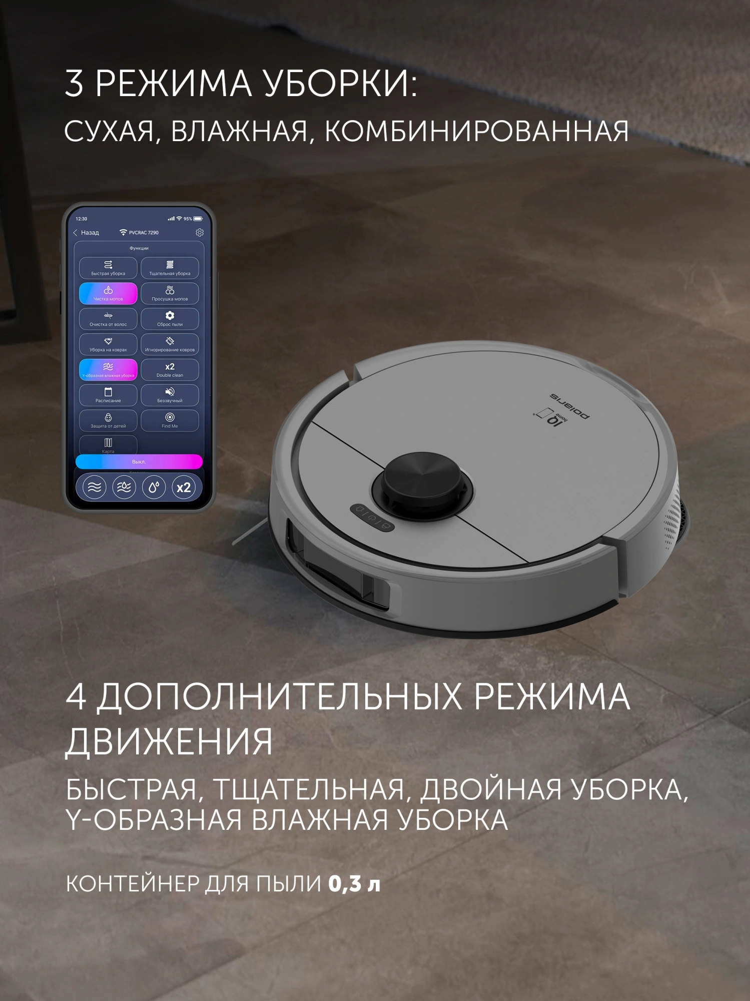 - Функции робота-пылесосараспознавание ковров, управление со смартфона