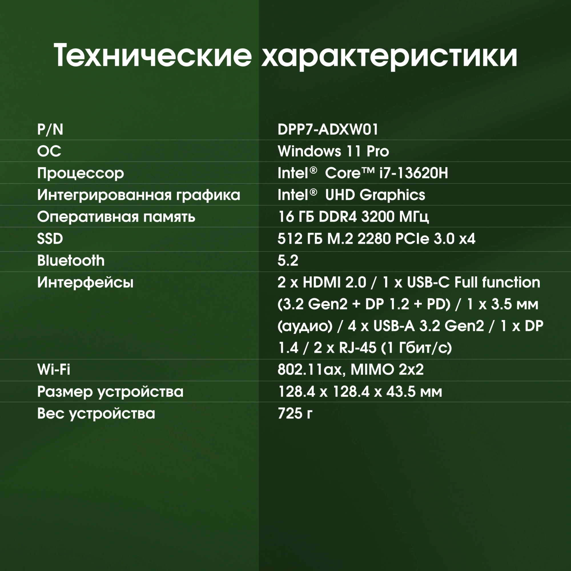 Неттоп Digma Pro Minimax X5 i7 13620H (2.4) 16Gb SSD512Gb UHDG Windows 11 Pro GbitEth WiFi BT 100W серебристый (DPP7-ADXW01)