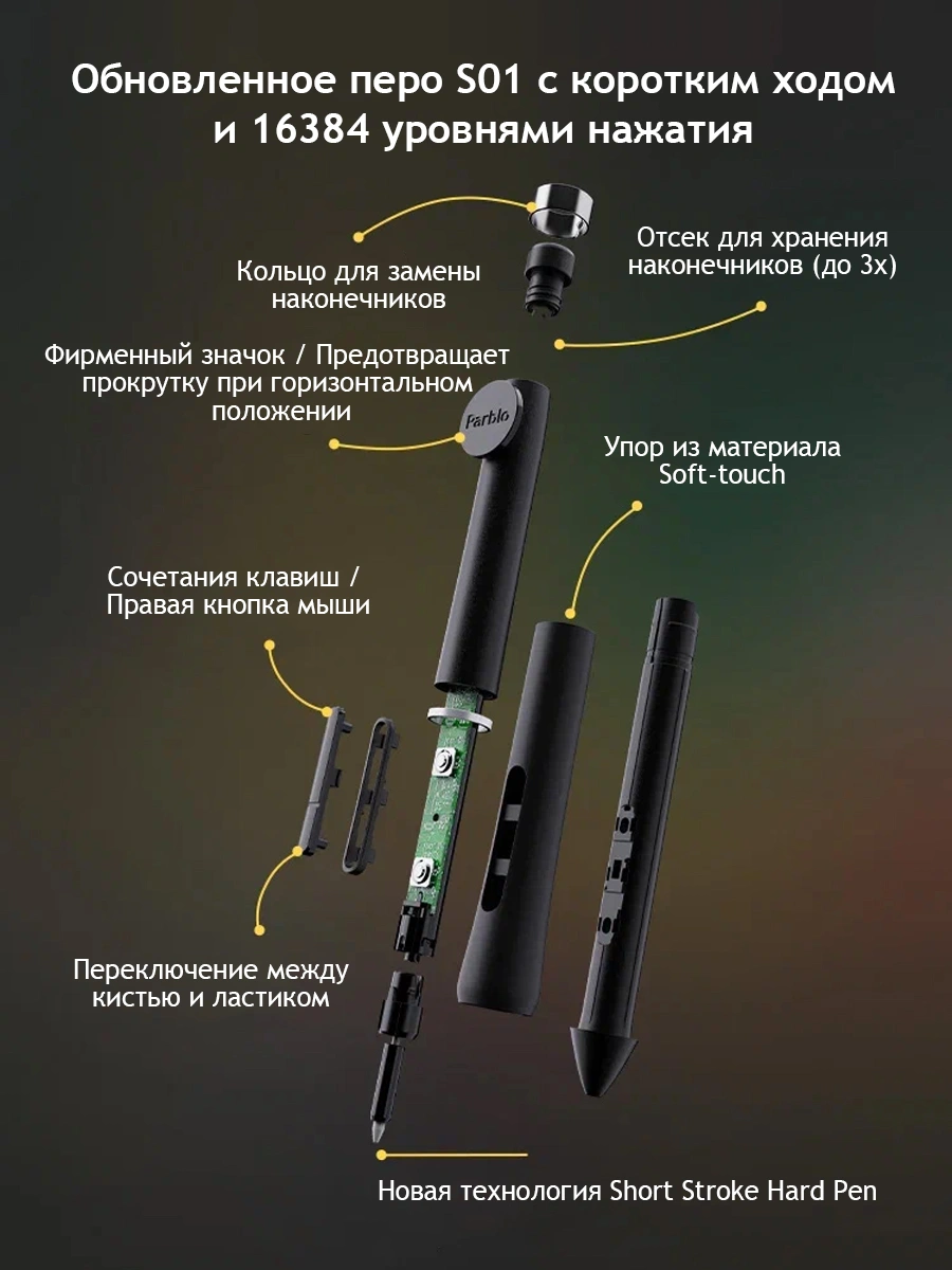 - Особенности16 тыс. уровней чувствительности к нажатию