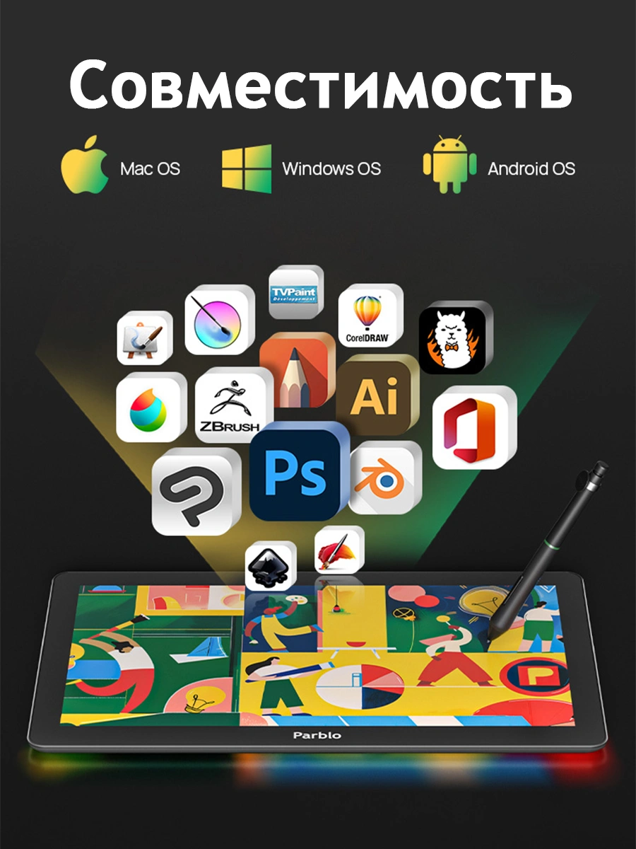 Разрешение дисплея 1980 х 1080 и полная ламинация обеспечивают чёткость изображения и комфортную работу. Устройство отображает до 16,7 млн цветов, что делает его незаменимым для графического дизайна, обработки фотографий, ретуши и даже 3D-моделирования. Совместим с Windows, Mac OS и Android
