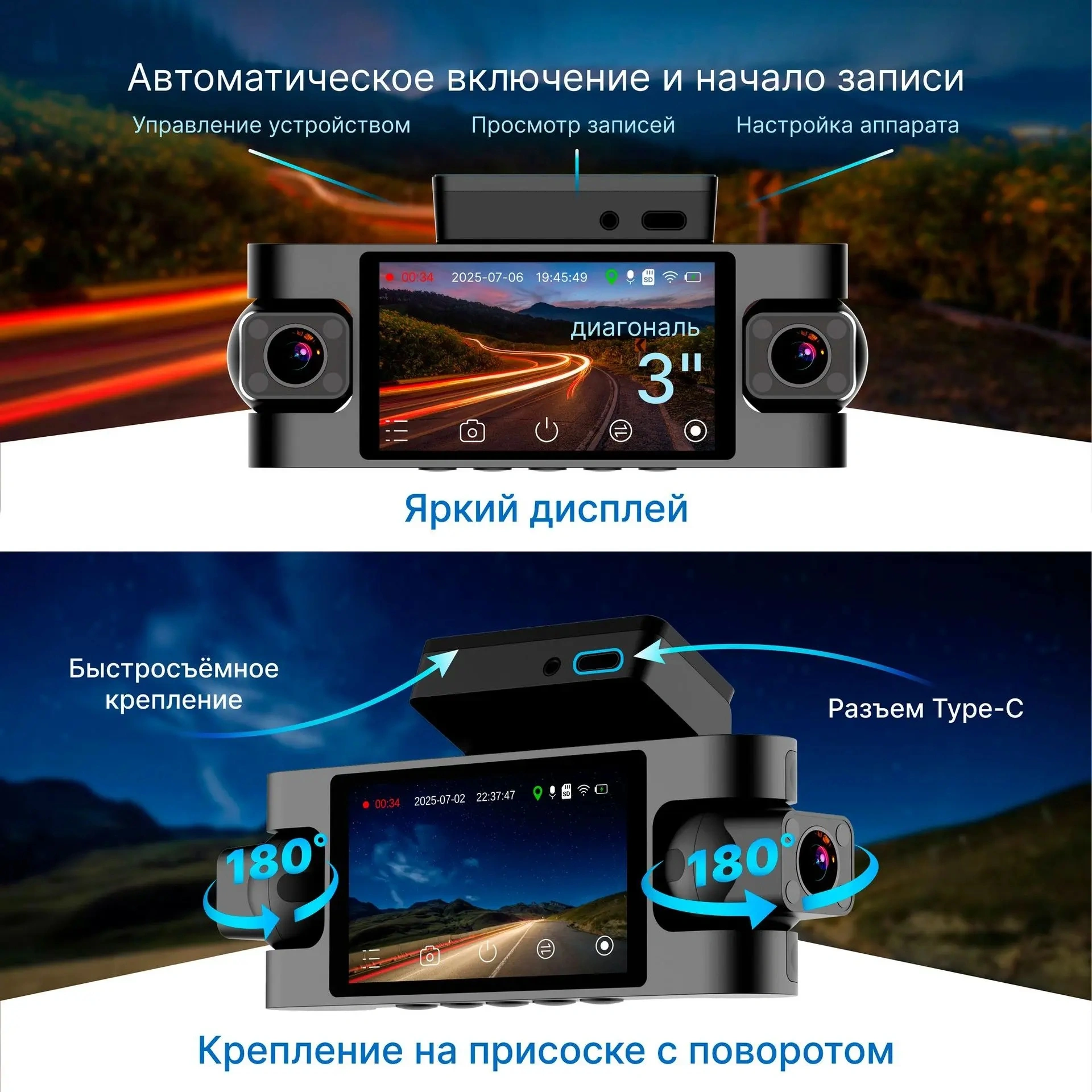 Видеорегистратор TrendVision Proof 360 черный 2Mpix 1440x2560 1440p 150гр. GPS SigmaStar SSC8826Q