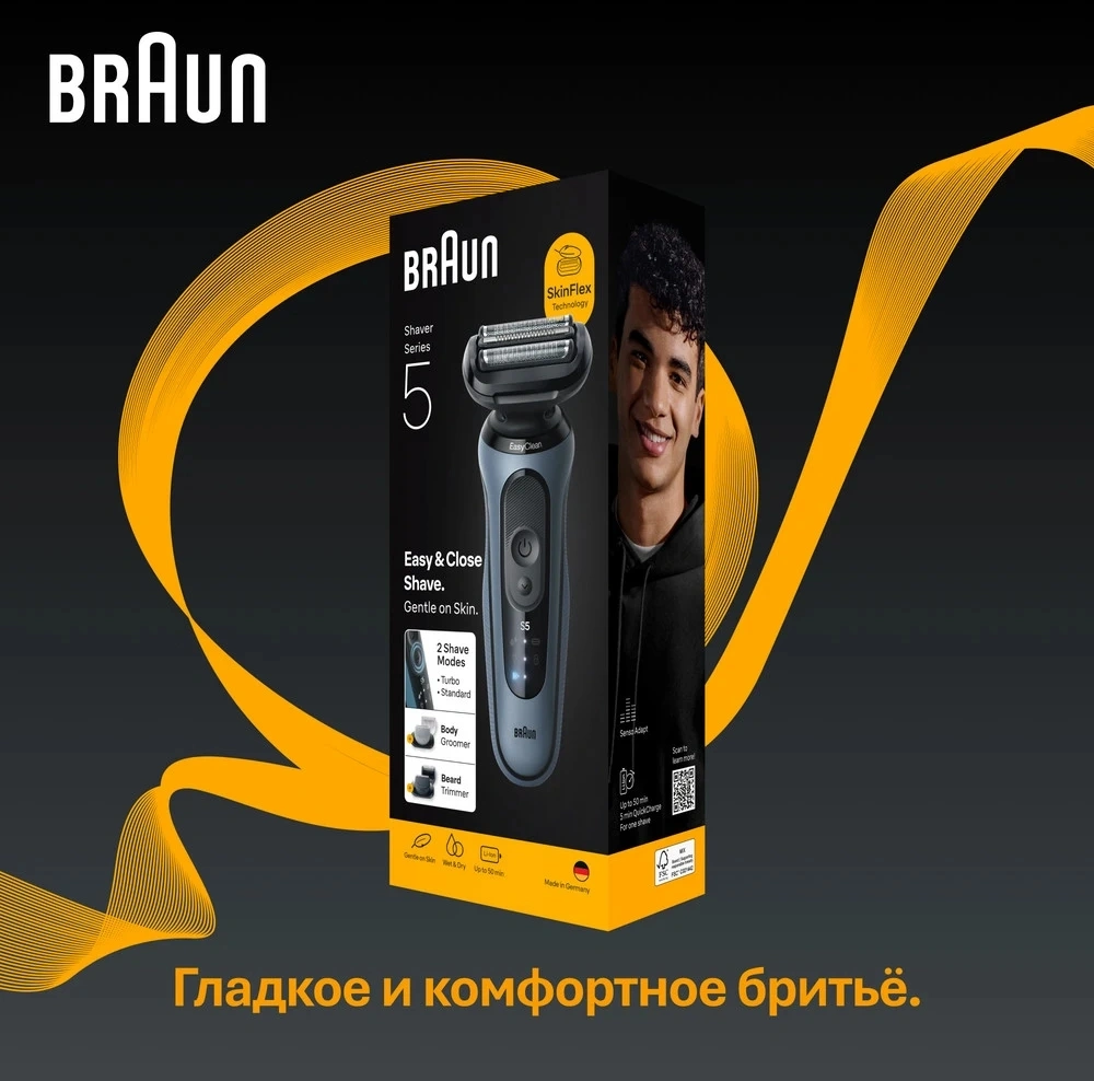 Бритва сетчатая Braun 52-A1650s реж.эл.:2 питан.:элек.сеть/аккум. синий
