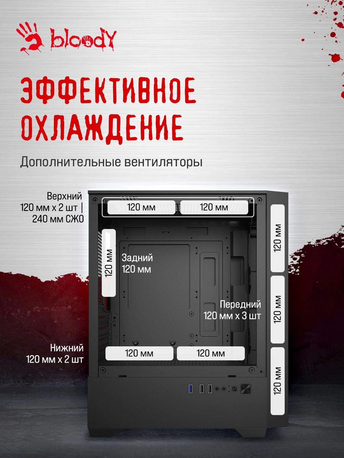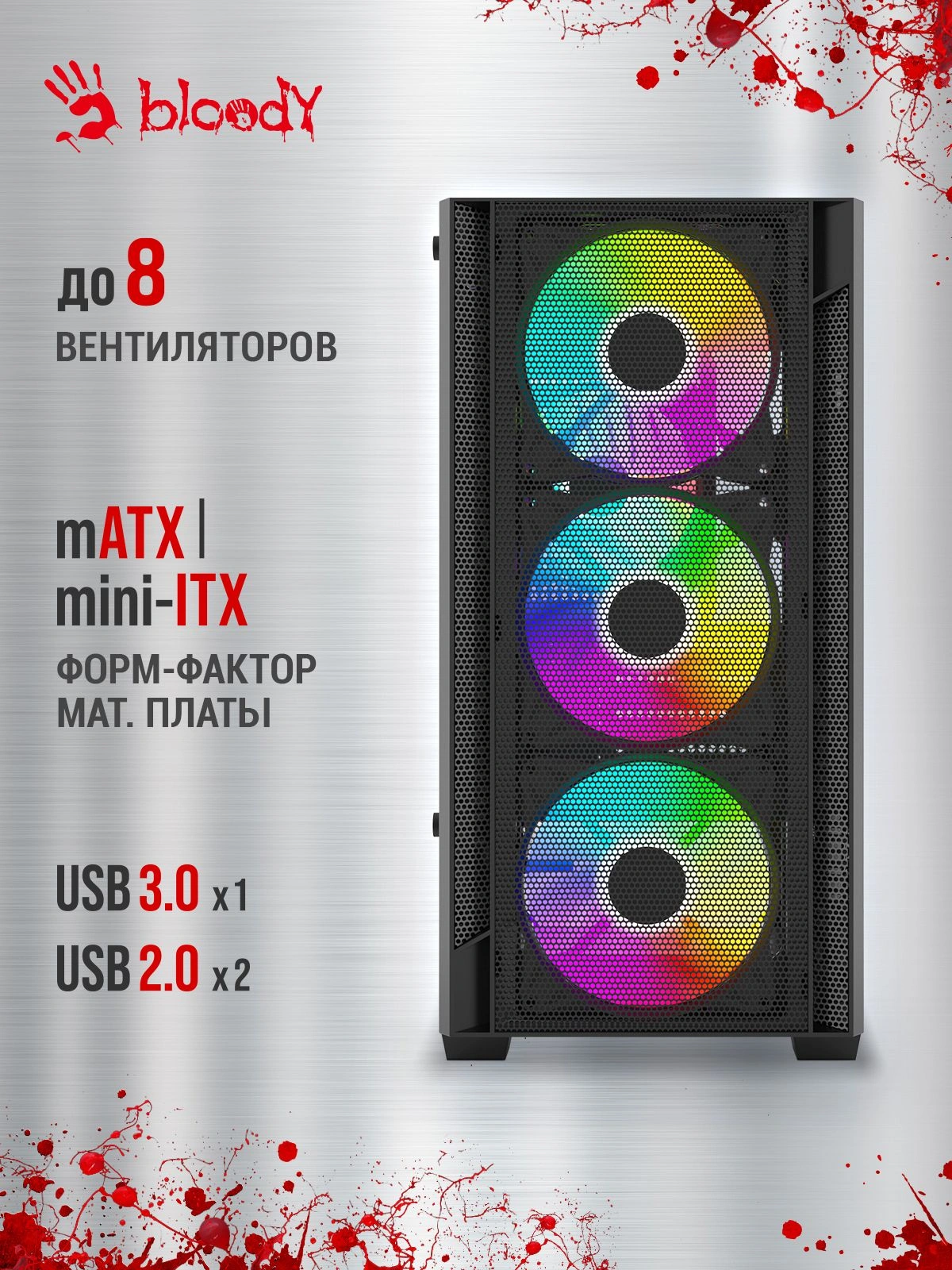 Корпус Bloody CC-124 черный без БП mATX 8x120mm 2xUSB2.0 1xUSB3.0 audio bott PSU