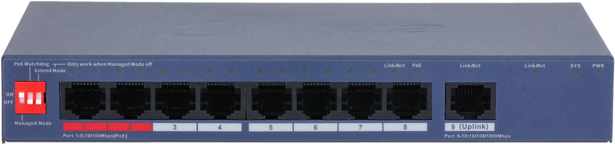 Коммутатор Dahua DH-CS4009-8ET1GT-110 8x100Мбит/с 1x1Гбит/с управляемый