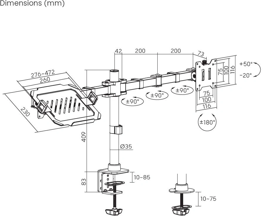 - Поддержка крепления VESA100x100, 75x75