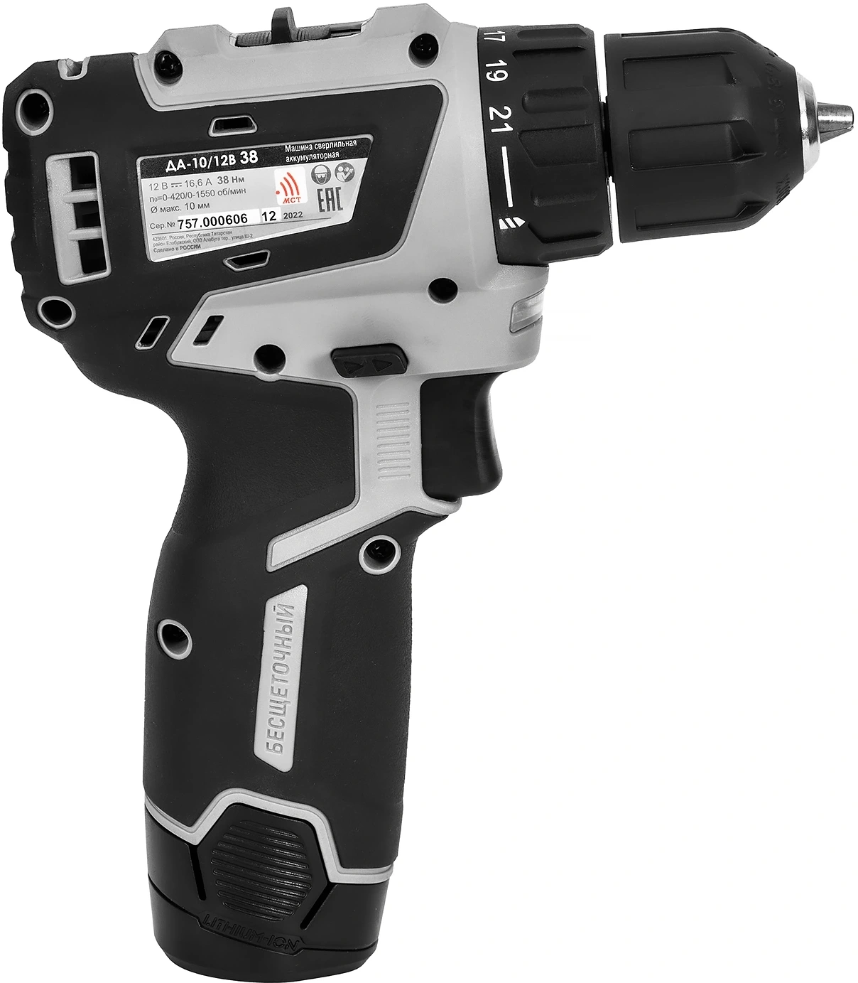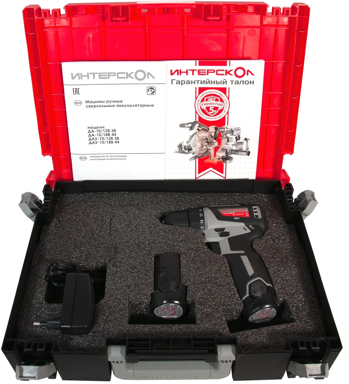 Дрель-шуруповерт Интерскол ДА-10/12В 38 аккум. патрон:быстрозажимной (кейс в комплекте) (757.2.2.46)