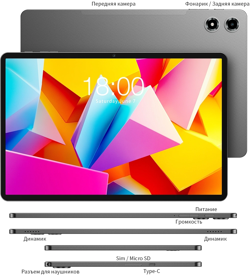 - Комплект поставкиПланшет, адаптер питания, кабель для зарядки, документация