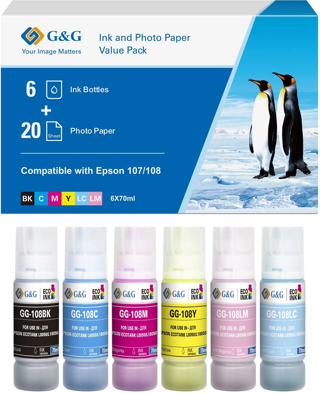 Чернила G&G GG-108-260g-4X6-20 набор 6x70мл для Epson Ecotank L8050/L18050