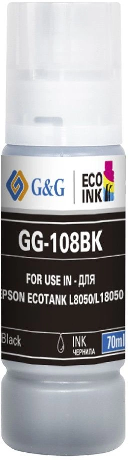 Чернила G&G GG-108BK C13T09C14A черный70мл для Epson Ecotank L8050/L18050