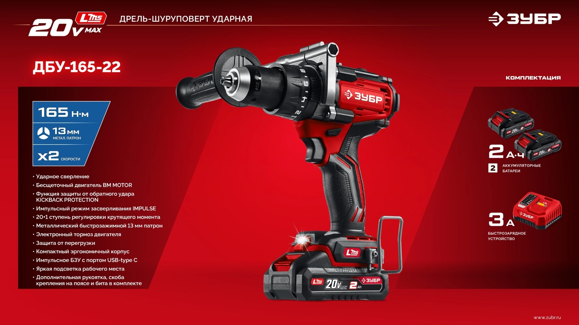Дрель-шуруповерт Зубр ДБУ-165-22 40Вт аккум. патрон:быстрозажимной
